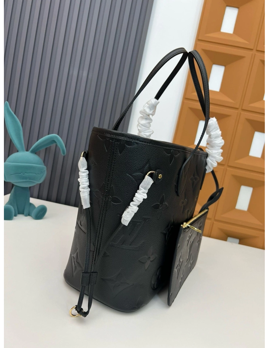 The essential Neverfull MM tote now comes in embossed Monogram Empreinte leather. Its generous dimensions make this bag ideal for everyday use while the long shoulder handles and supple leather mean its comfortable to carry. With the side laces cinched, this roomy carryall becomes a stylish city bag. It can be worn over the shoulder or on the elbow.