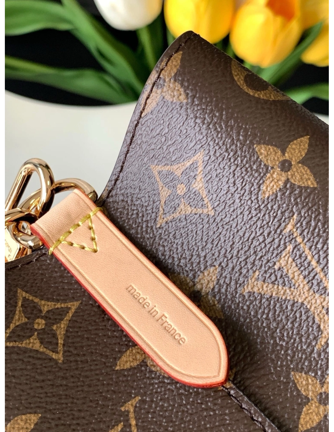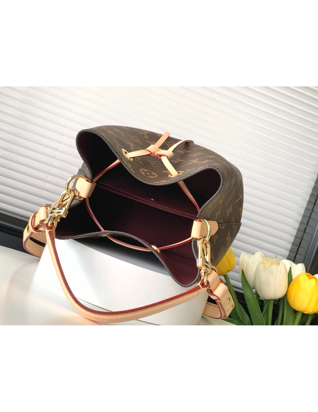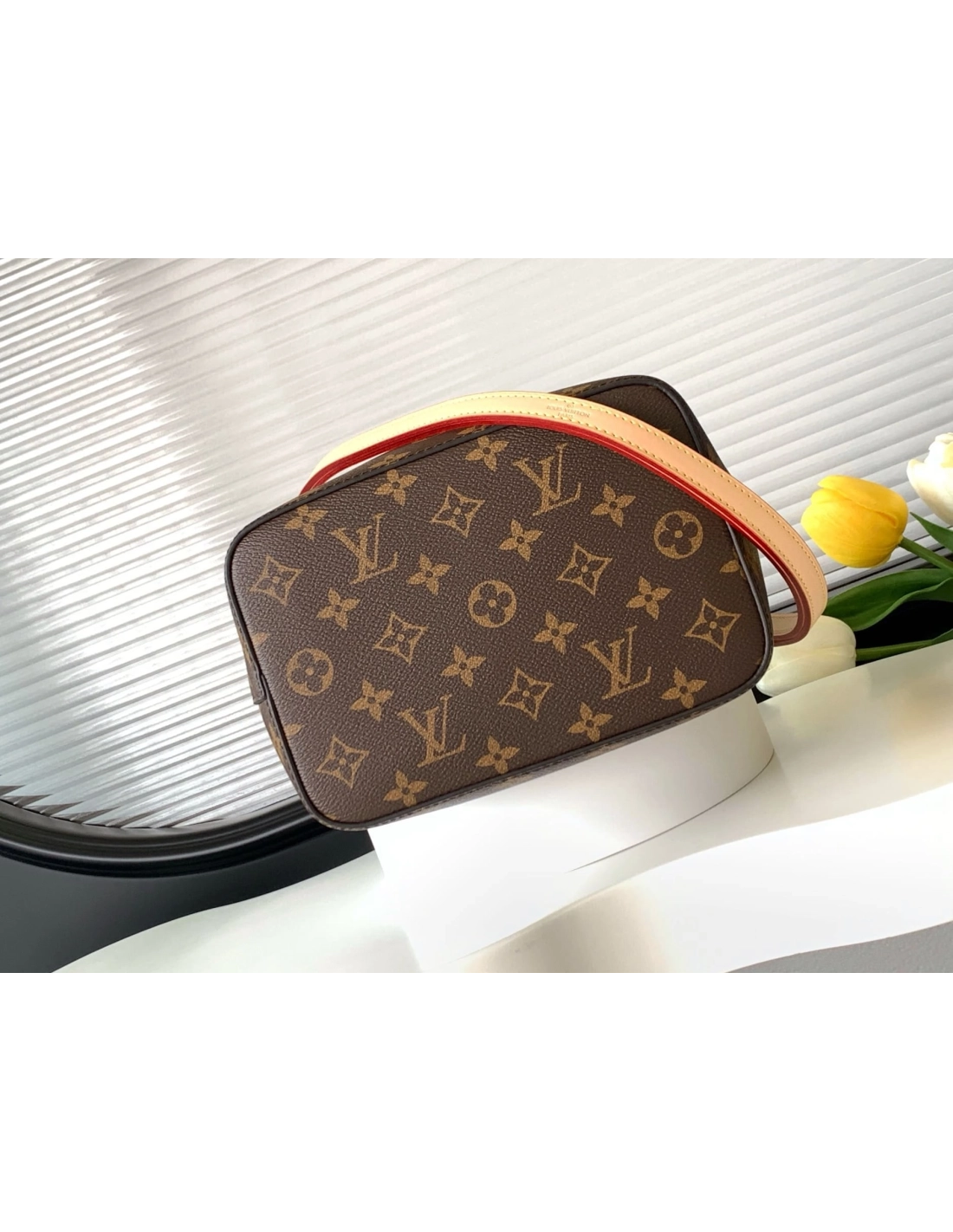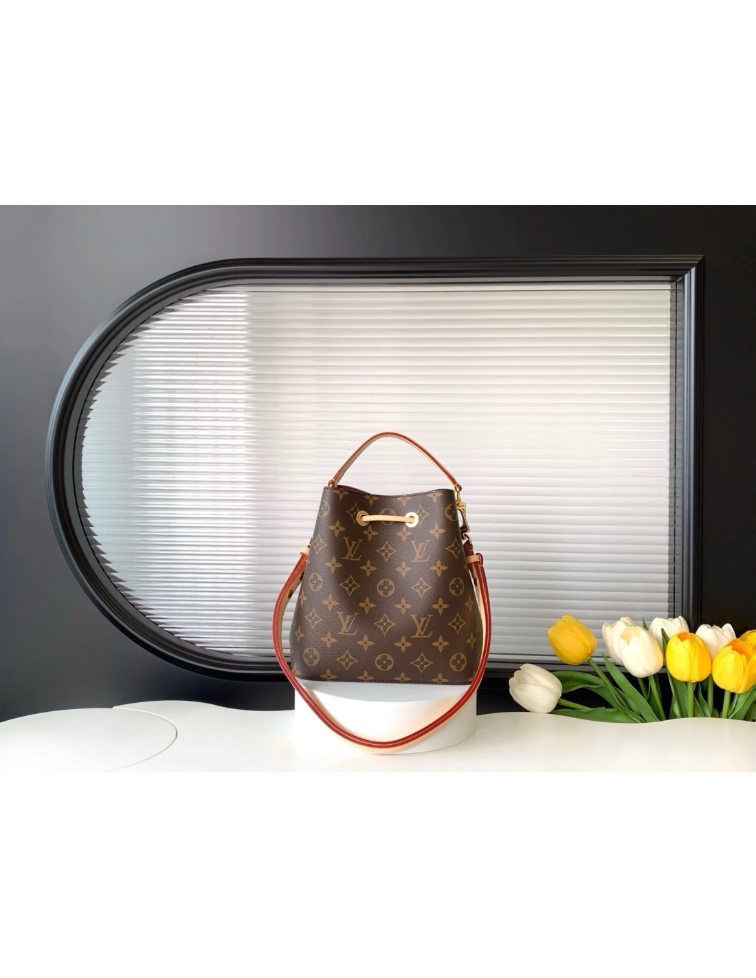 The NeoNoe BB in Monogram canvas with natural leather trim is a smaller interpretation of the Houses iconic NeoNoe bucket bag. Spacious enough to hold essentials such as keys, Airpods, and an iPhone, it features a leather drawstring to close the bag and keep belongings secure. A removable handle and detachable, adjustable strap offer multiple carry options.