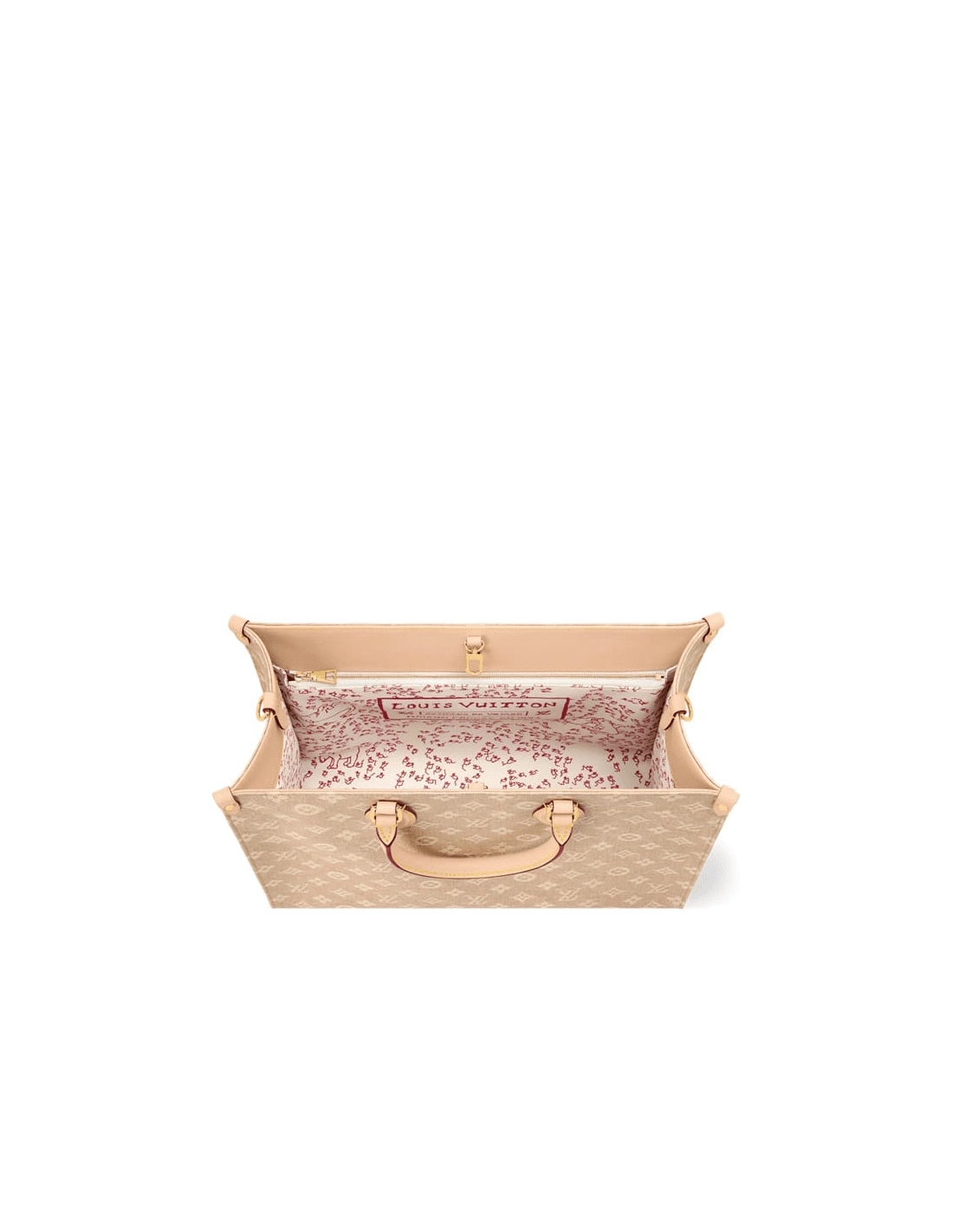 This OnTheGo Organizer is designed in collaboration with Grace Coddington for her exclusive LV Travels With collection. Paying tribute to the fashion icon and artists love of cats, it is crafted from canvas featuring the Houses playful Meowgram pattern and is topped with contrasting leather handles. The name tag is printed with Coddingtons handwriting, adding a personal touch.