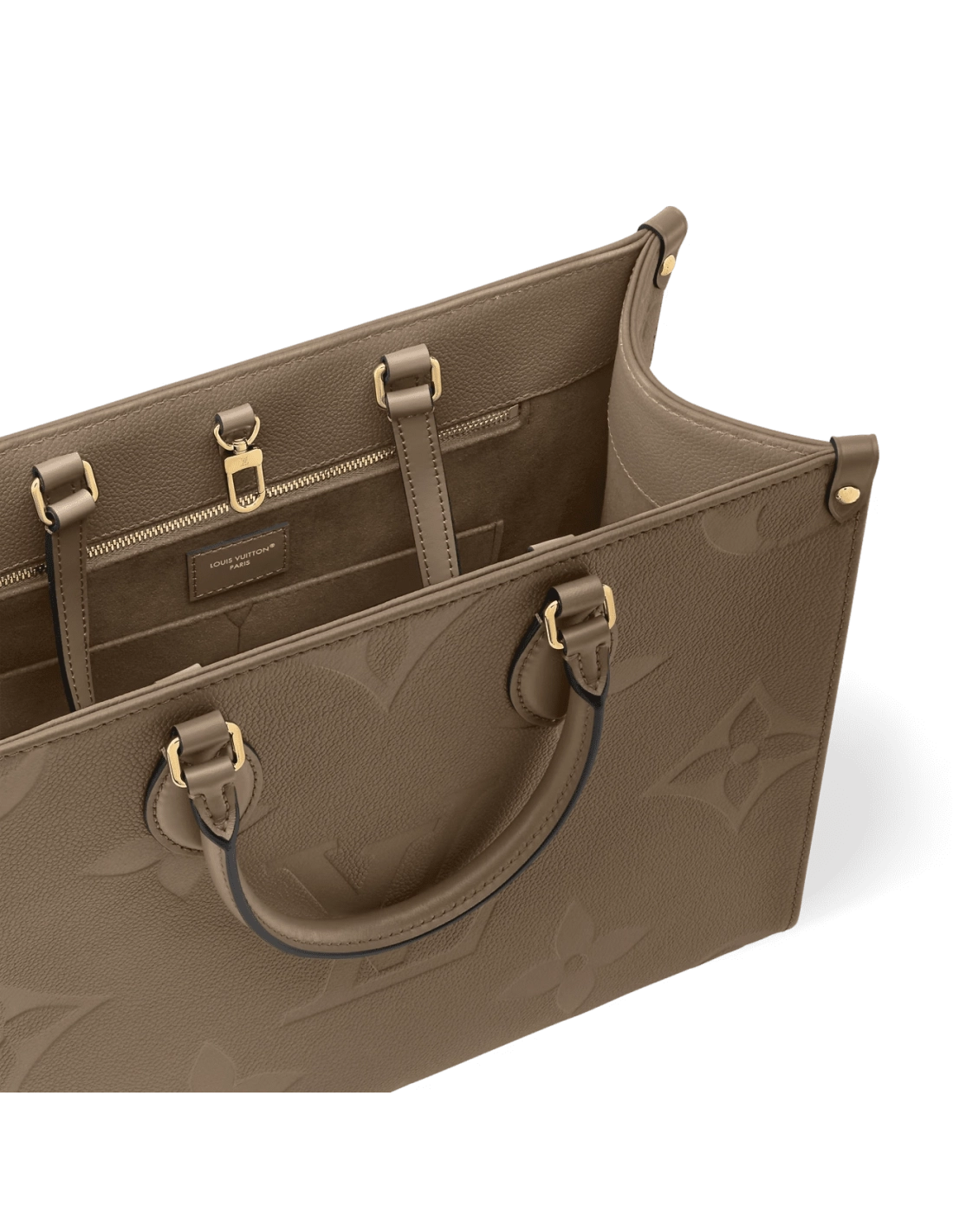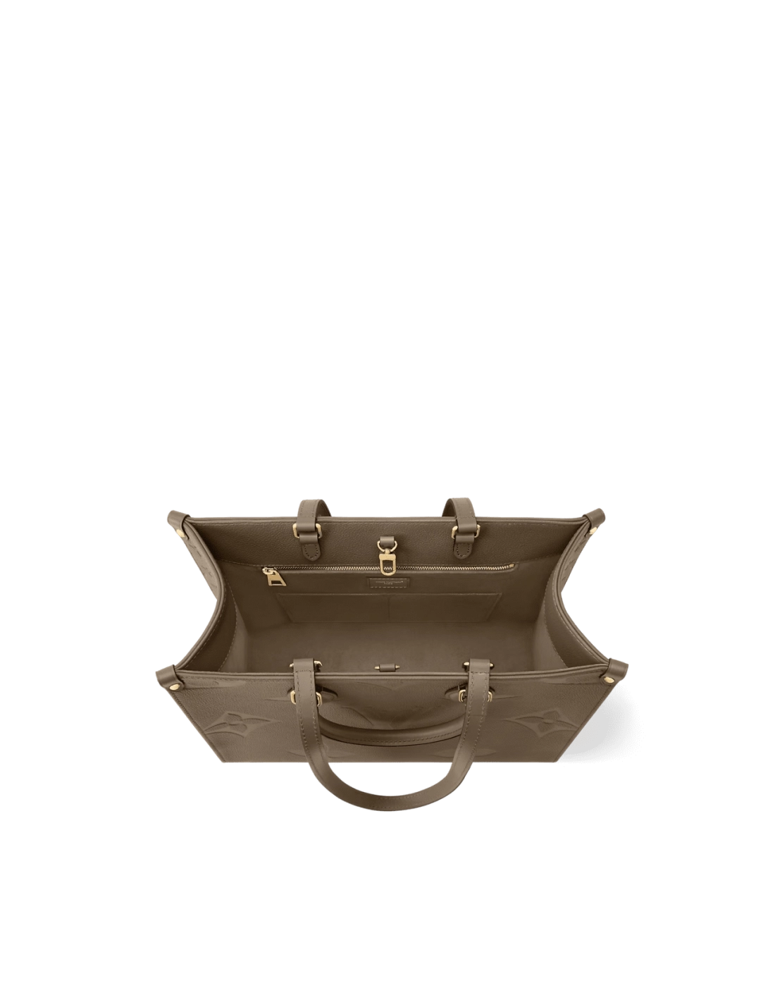 This seasonal edition of the OnTheGo MM is offered in a timeless Smoke colorway that complements any outfit. It is crafted from signature Monogram Empreinte leather, accented with cowhide trims and with sophisticated gold-toned hardware. The capacious design is sized to fit a laptop amongst other daily essentials, and includes several pockets, as well as a removable name tag with a mirror.
