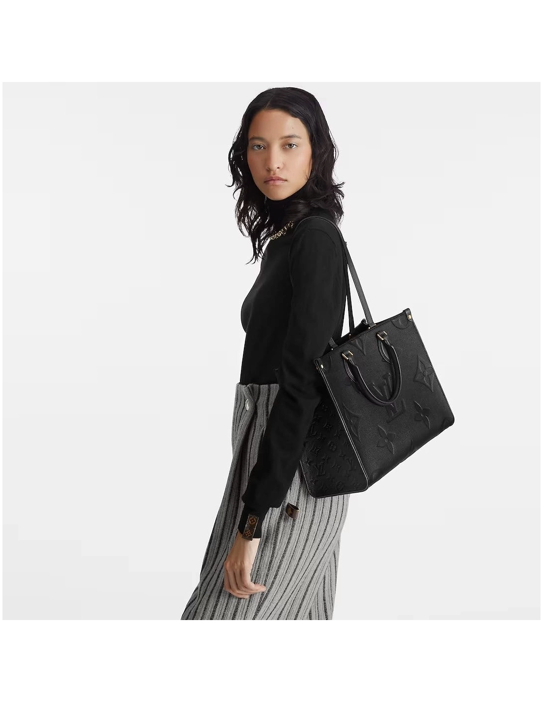 For Spring 2021, Louis Vuitton launches the Onthego MM tote bag in grained Monogram Empreinte, a soft leather that is embossed with a large and modern Monogram pattern. Thanks to the square shape, it boasts a generous capacity and can easily fit a laptop. Its articulated top handles and shoulder straps give carrying options.