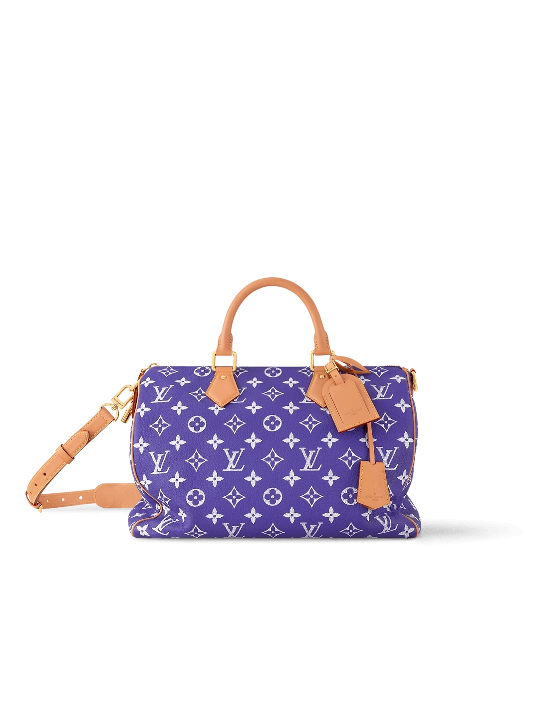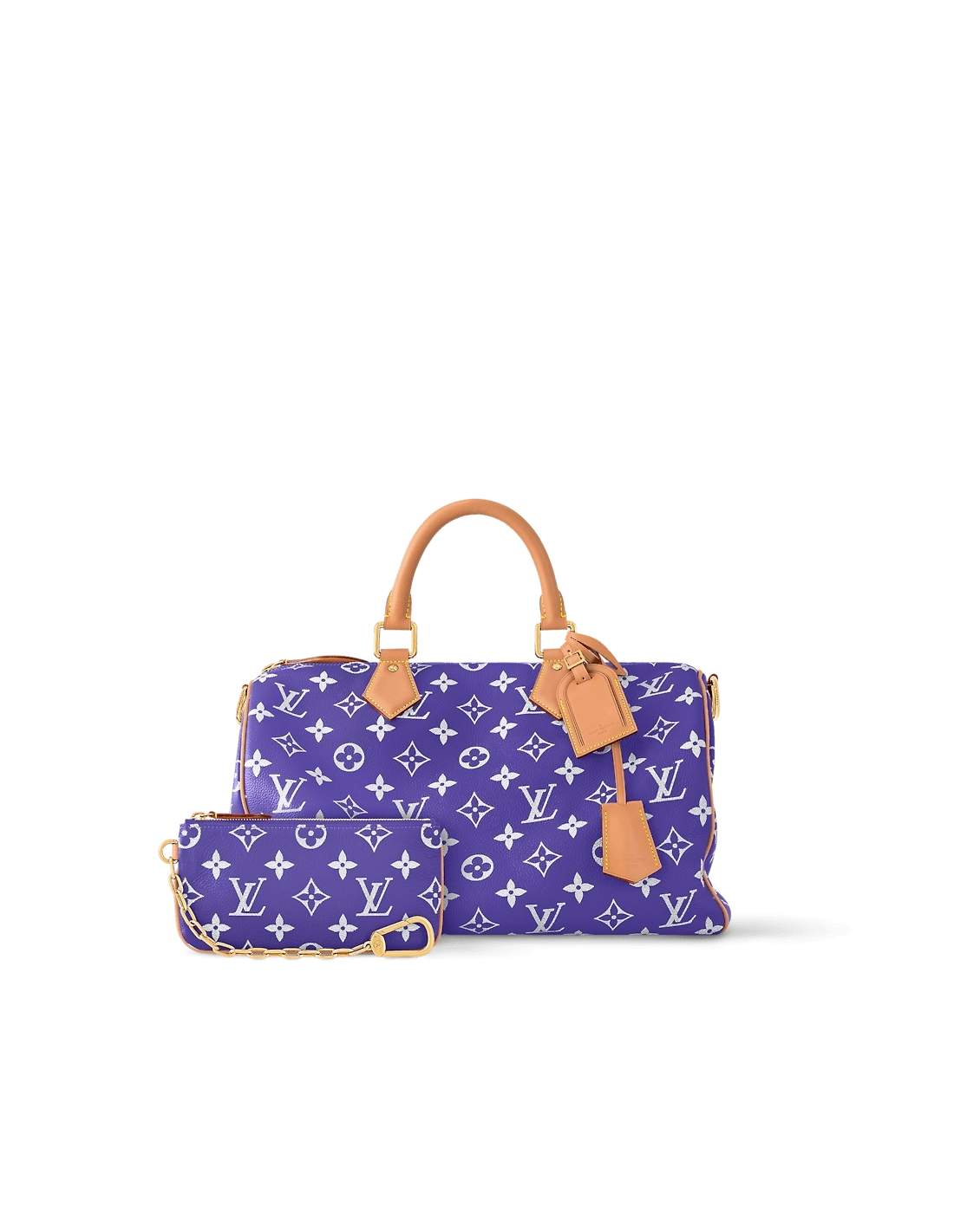The Speedy P9 Bandouliere 40 bag is made from extra-soft calfskin in a colorway inspired by precious stones. This less-structured version of the iconic Speedy is body-friendly and very comfortable to carry. As part of Pharrell Williams cowboy-influenced collection for Fall-Winter 2024, the handle mounts feature embossed horses.