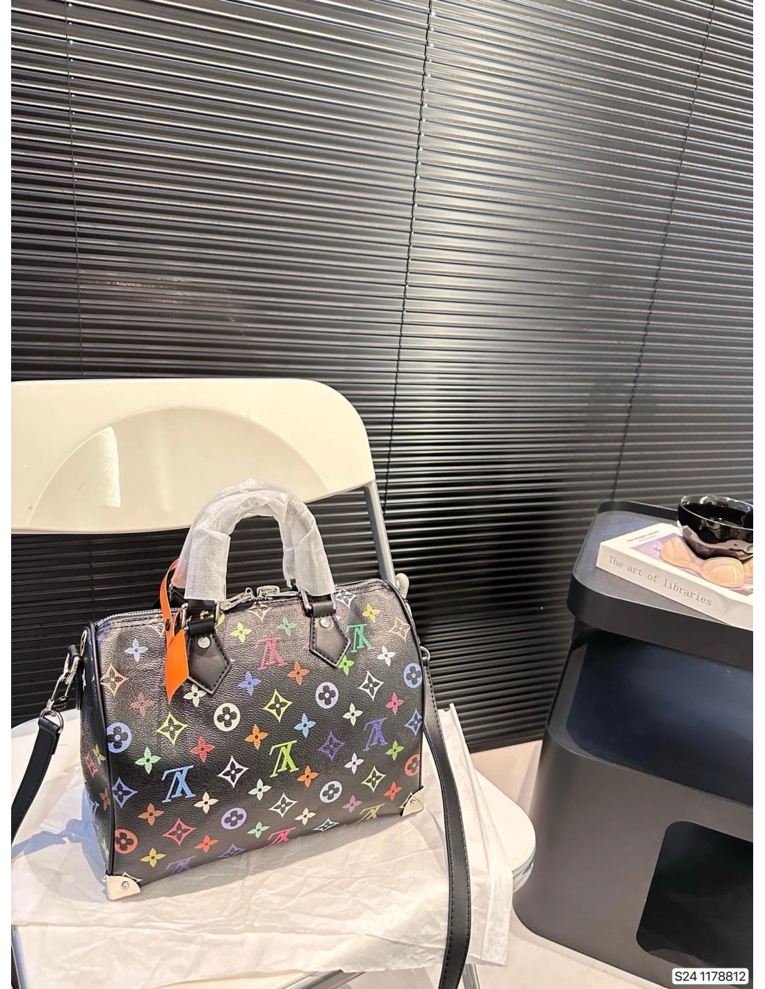 The Speedy Soft 30 makes an impact in supple coated canvas featuring an allover Monogram print in a vibrant rainbow palette as part of the re-edition of the Louis Vuitton x Murakami collection. The two Toron top handles and coordinating removable shoulder strap are crafted from tone-on-tone calf leather. Metallic corners recall detailing on the Houses heritage travel trunks, while a playful bow-shaped keybell fitted with a padlock adds a final signature touch.