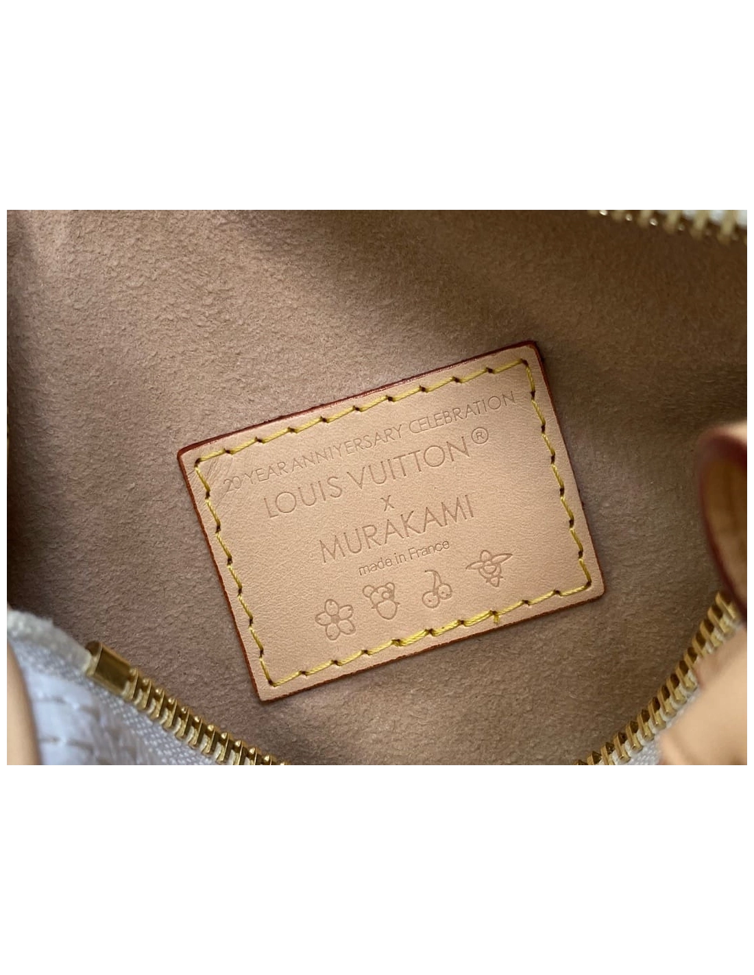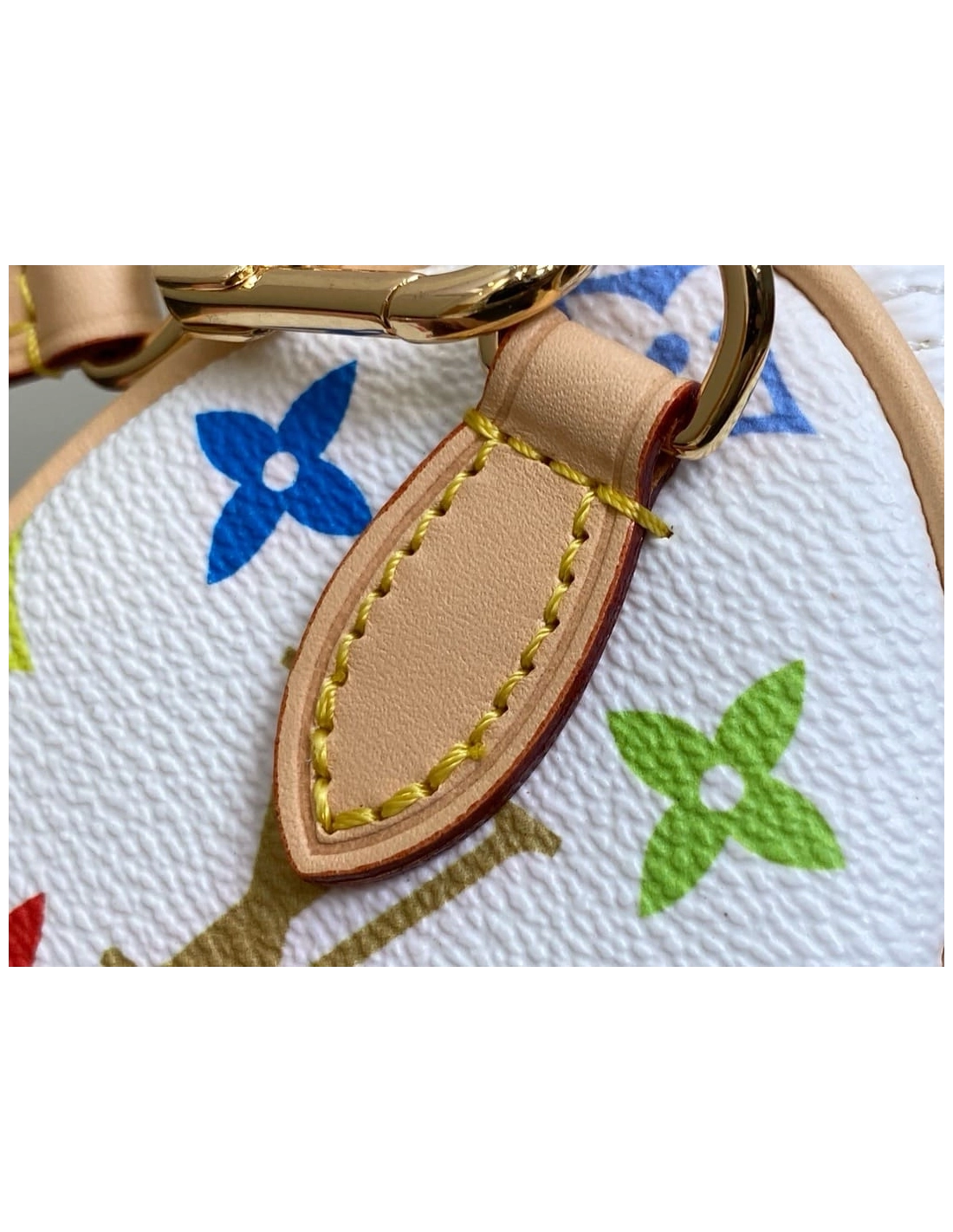 The scaled-down Nano Speedy makes a playful statement in Monogram coated canvas, which has been reworked in upbeat tones as part of the re-edition of the Louis Vuitton x Murakami collection. Natural cowhide leather trims add a timeless touch, as do two Toron top handles and a gleaming golden padlock in homage to the Houses travel heritage. Complete with a removable, adjustable strap and an exclusive LV x TM keybell.