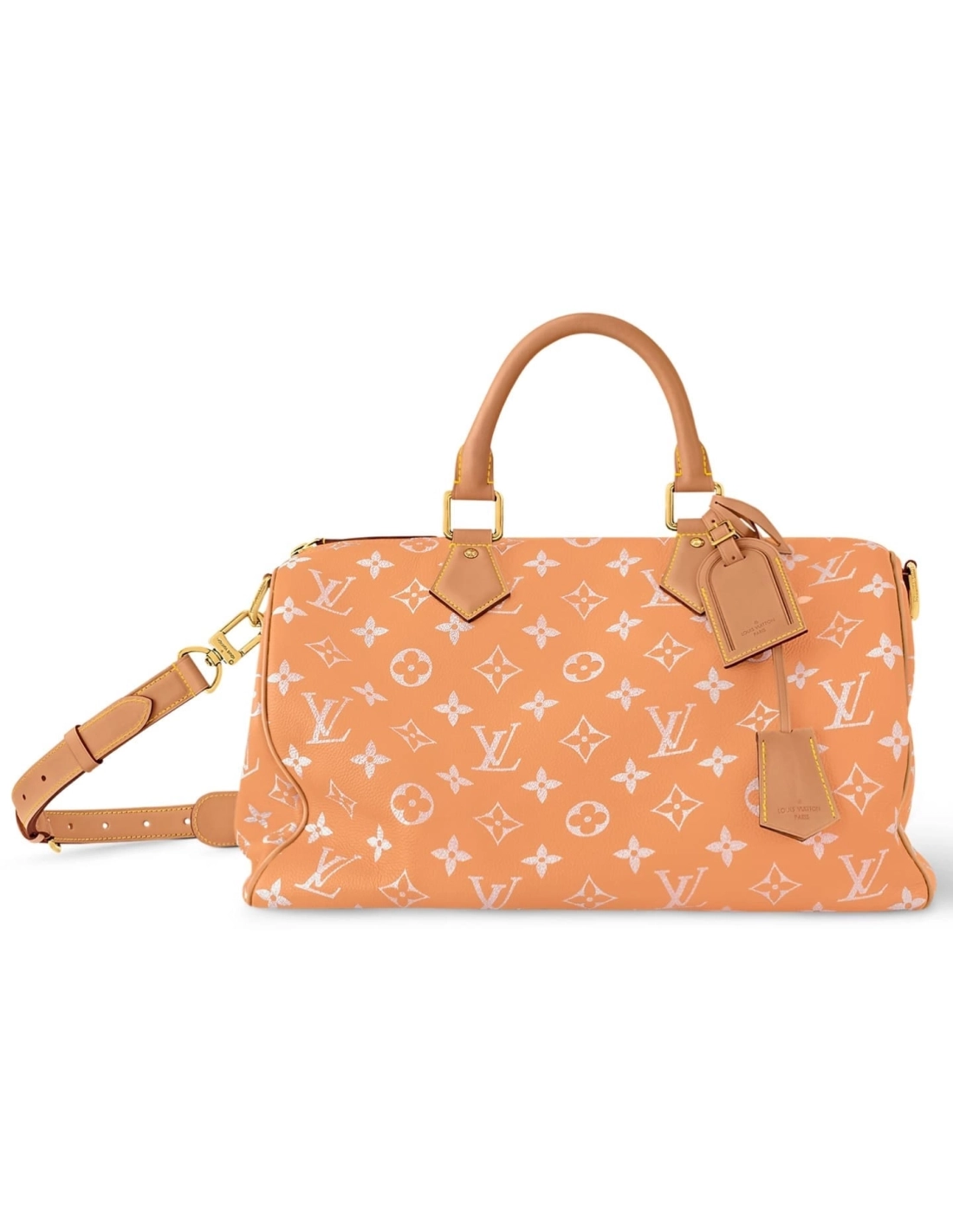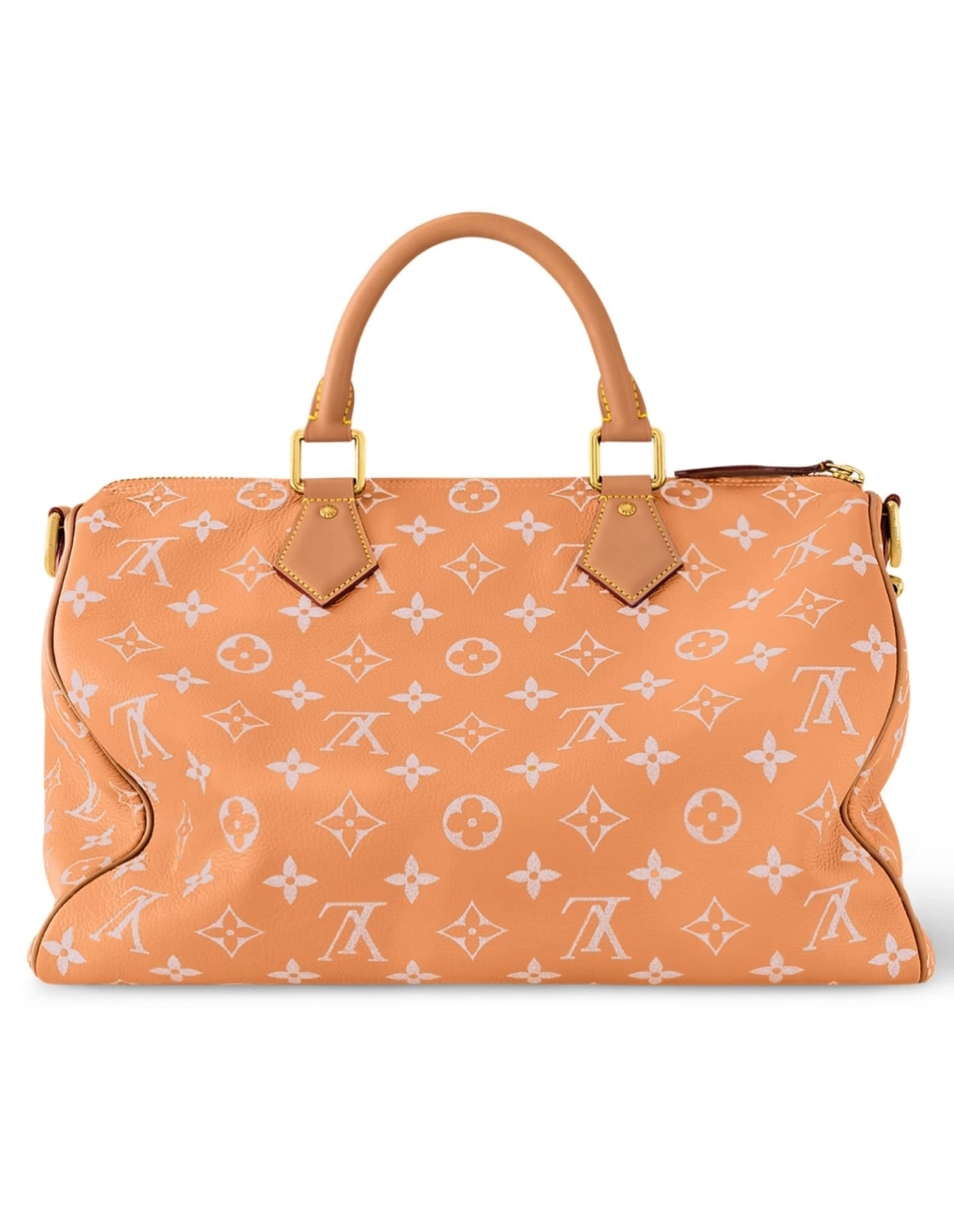 Working with naturally supple grained calfskin, Creative Director Pharrell Williams has given this Speedy P9 Bandouliere 40 Monogram Leather a super-soft feel. The Monogram is printed on bright leather in a high-end silk-screen technique that perfectly reproduces the almost blurry effect of Monogram printed on canvas. This Speedy is fully lined with ultra-luxurious lambskin leather.