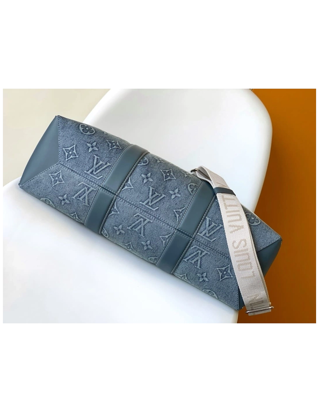 The Week-End Tote bag is fashioned from Monogram Washed Denim canvas with a debossed Monogram pattern. The denim is first washed, then hand sprayed, before a final finish that gives it a slightly faded effect. This spacious tote has flat handles as well as an adjustable strap for comfortable shoulder carry.