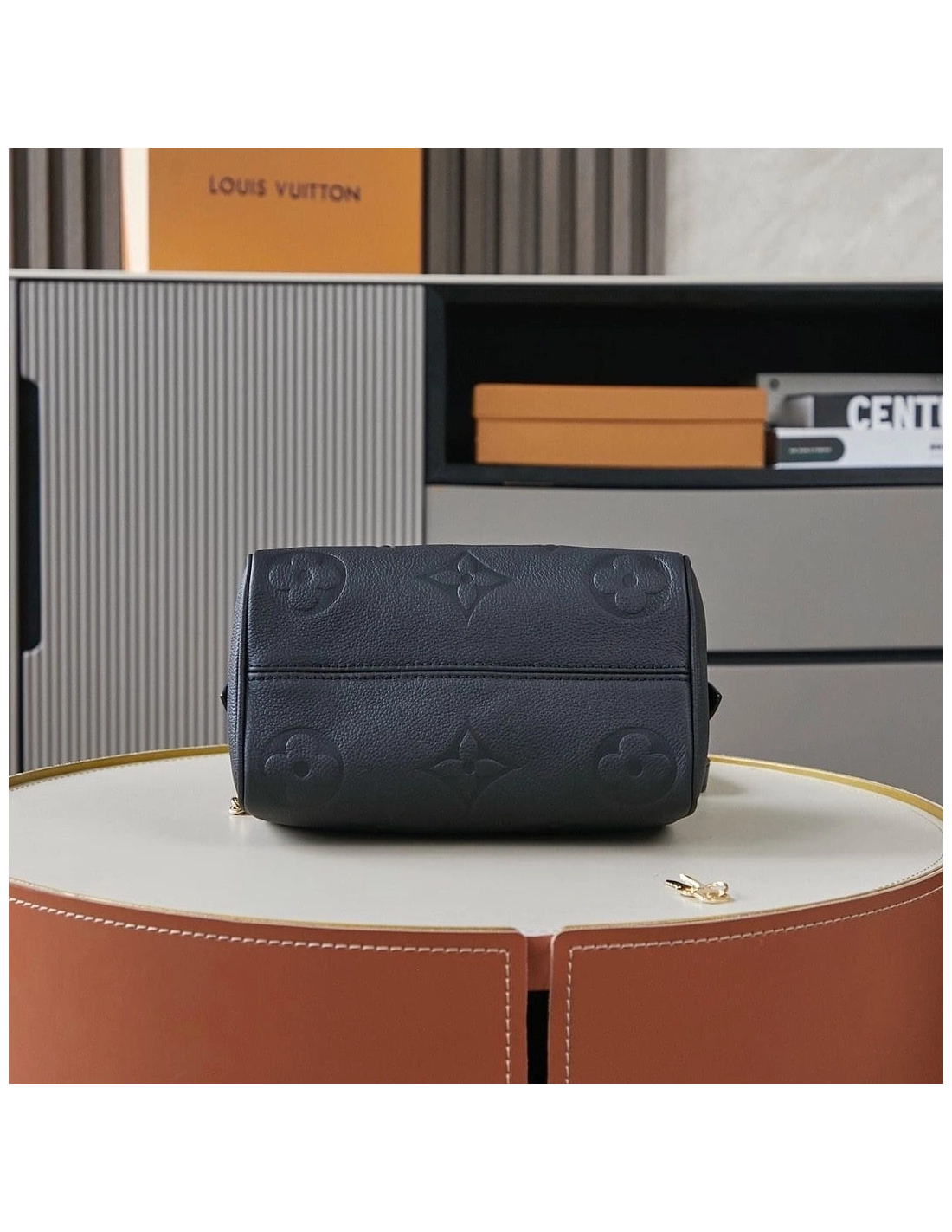 The Speedy Bandouliere 20 bag is an on-trend compact bag, just the right size to carry daily essentials. Its made from smooth grained Monogram Empreinte leather, embossed with an oversized Monogram pattern. The hardware and padlock are a golden colour. It has a delicate chain strap that is removable and adjustable, in addition to two Toron handles.