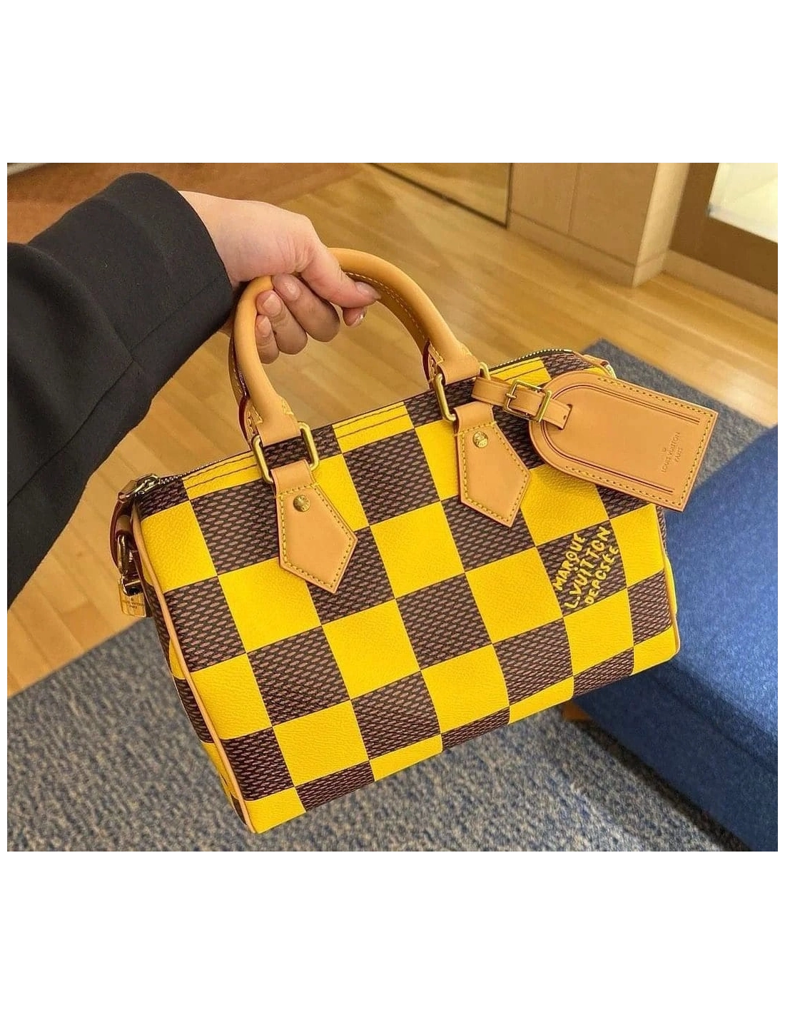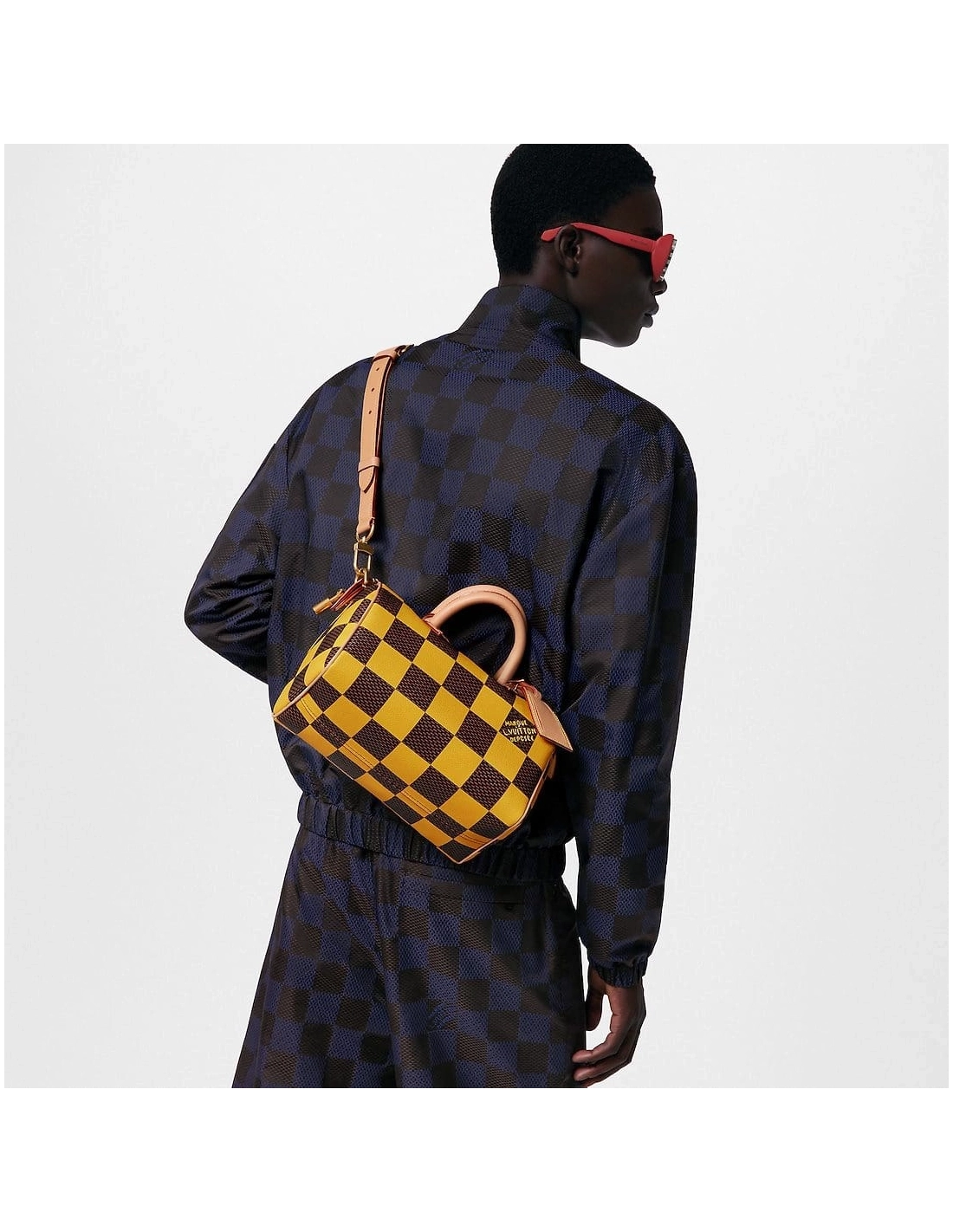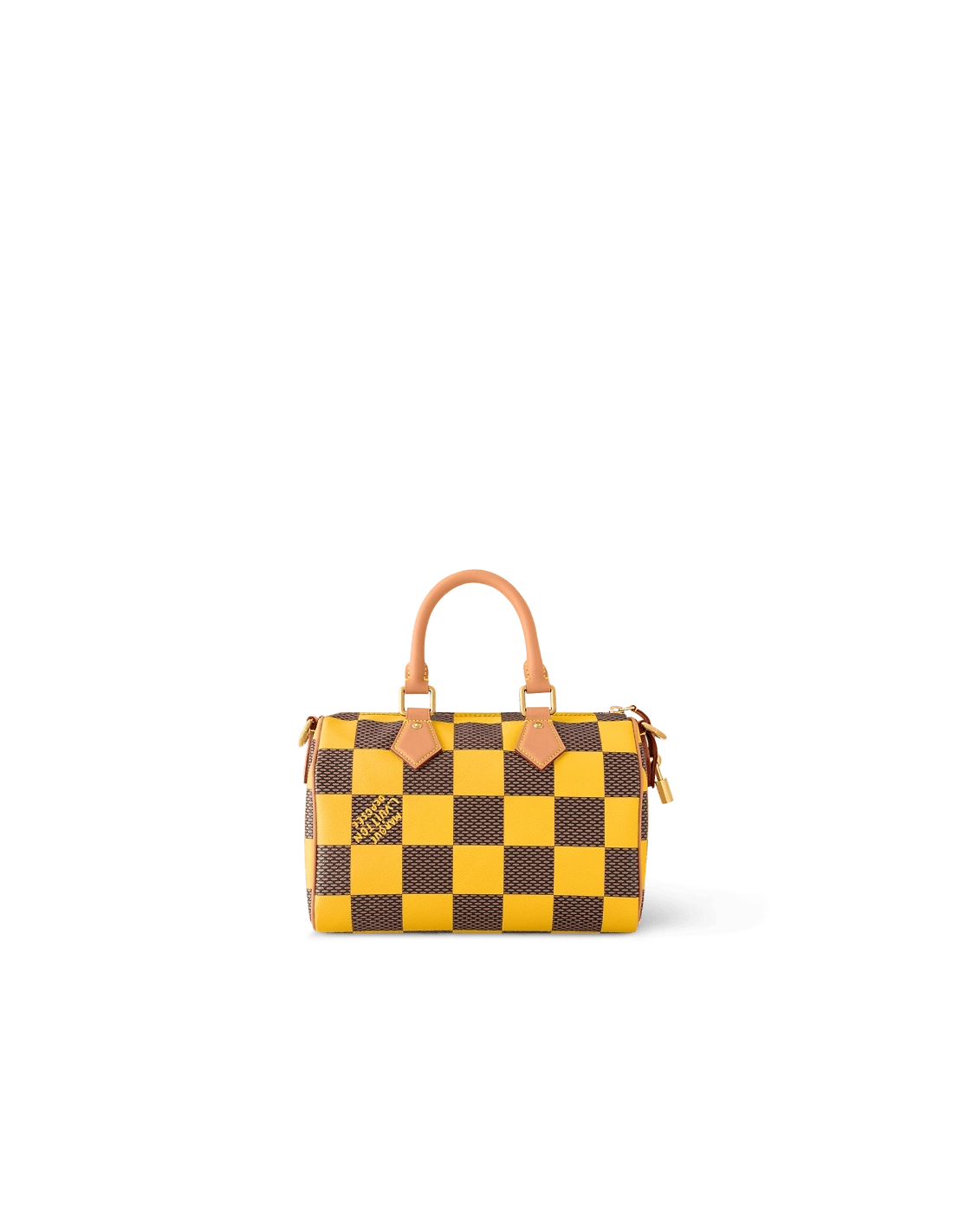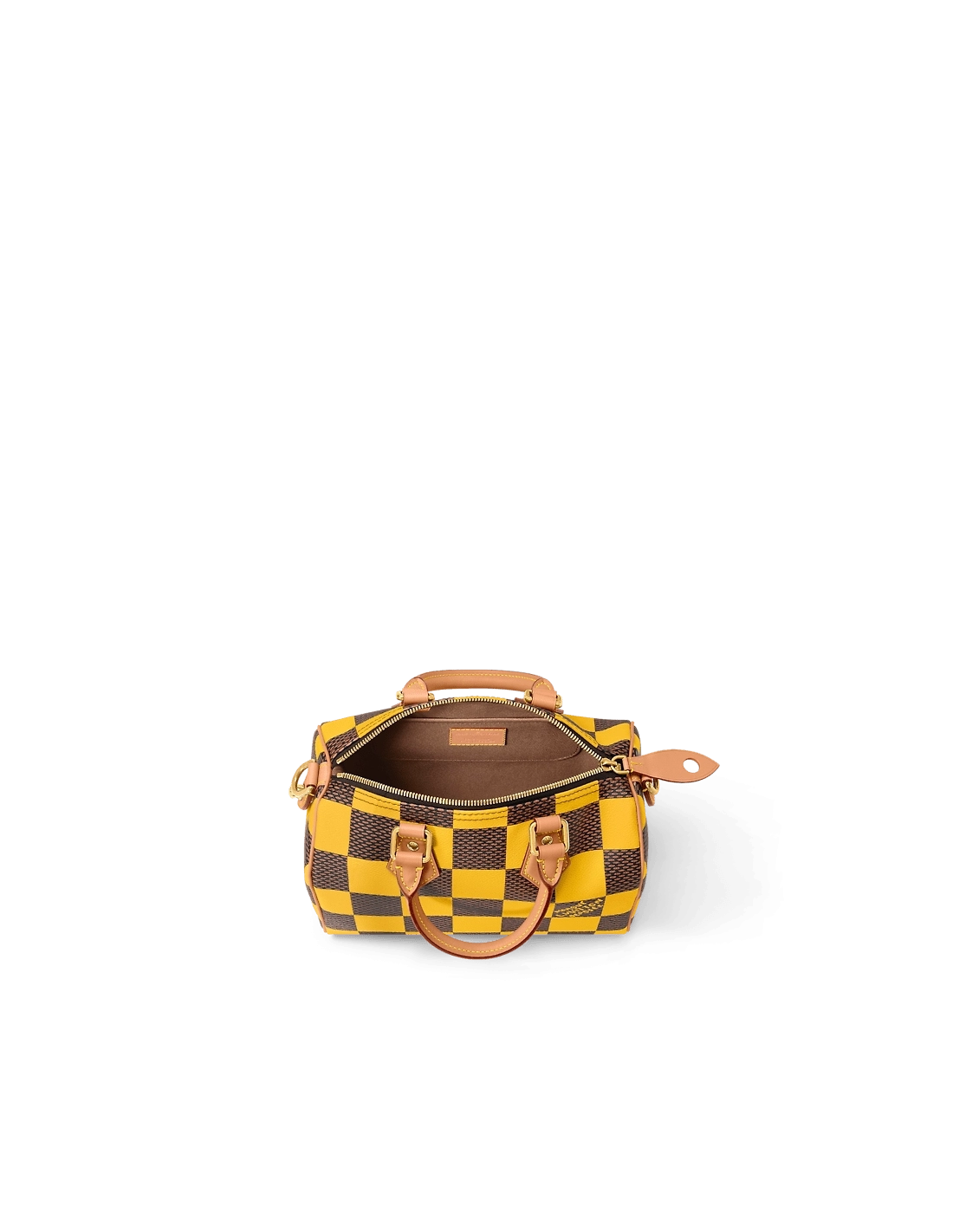 This Speedy 25 Bandouliere Damier Pop displays the same trapezoid lines as the classic Speedy but made from supple Damier Pop coated canvas, the bottom of the bag drapes casually. The new colorway brings a touch of playfulness while the natural cowhide-leather trim and polished gold-color hardware pay homage to the Houses classic bags.