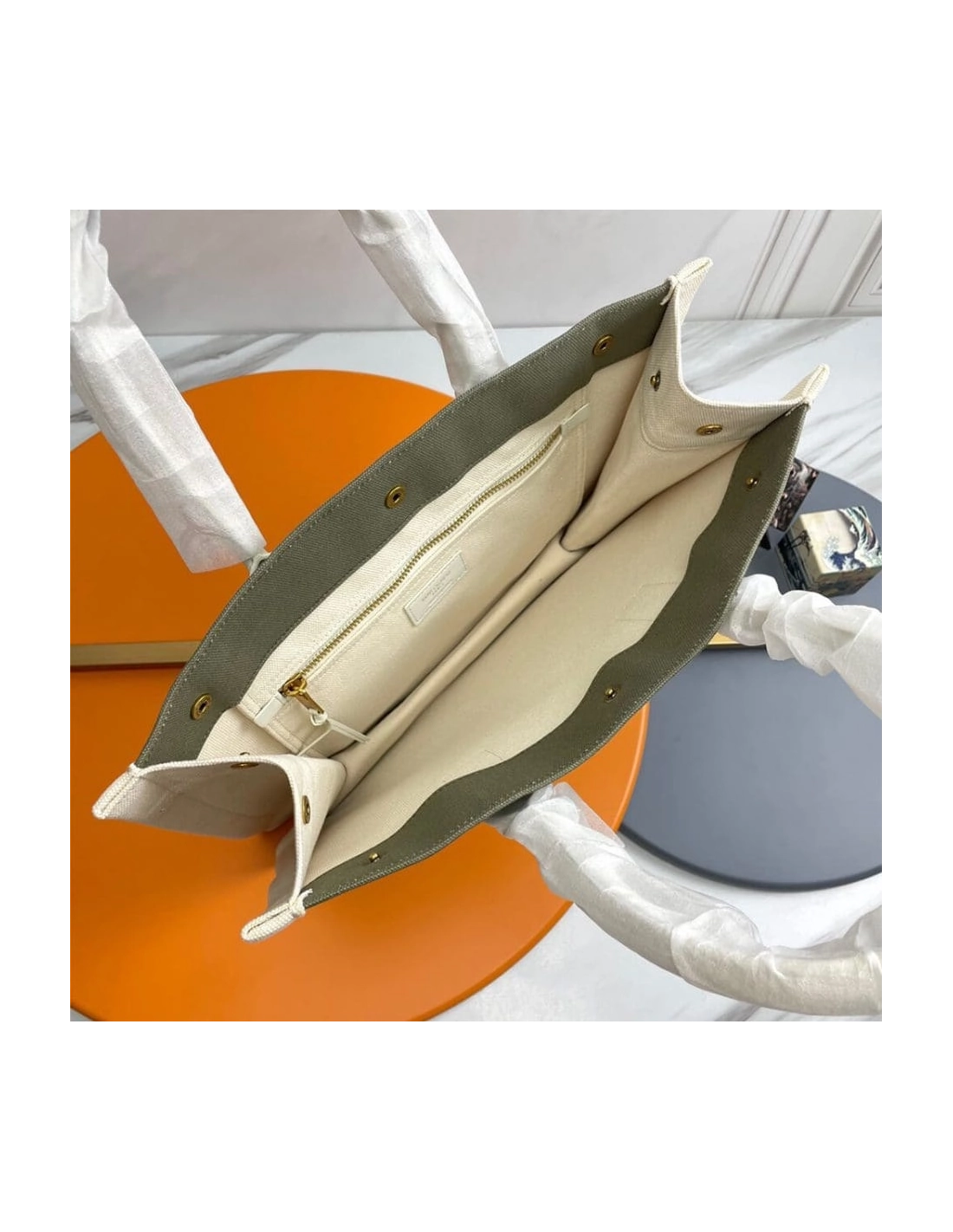 MILITARY GREEN AND BLANC VINTAGE 100% COTTON DIMENSIONS: 39 X 31 X 18 CM / 15.4 X 12.2 X 7.1 INCHES HANDLE DROP: 16 CM SILVER-TONED METAL HARDWARE SNAP BUTTON CLOSURE INTERIOR: ONE MAIN COMPARTMENT, ONE ZIP POCKET UNLINED STYLE ID 617481FAADI3281 Packing: Box,Invoice,Cards and Dust bag.