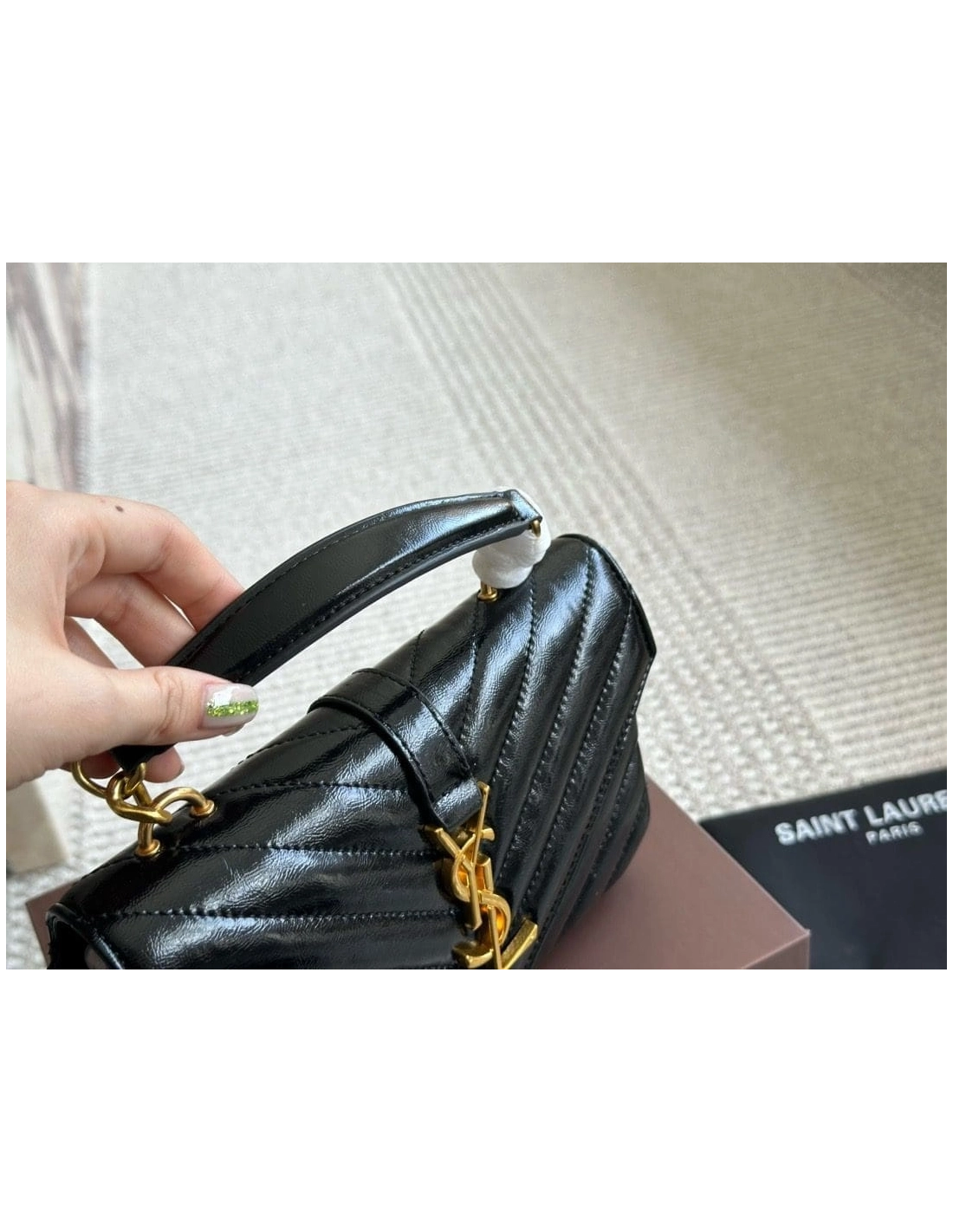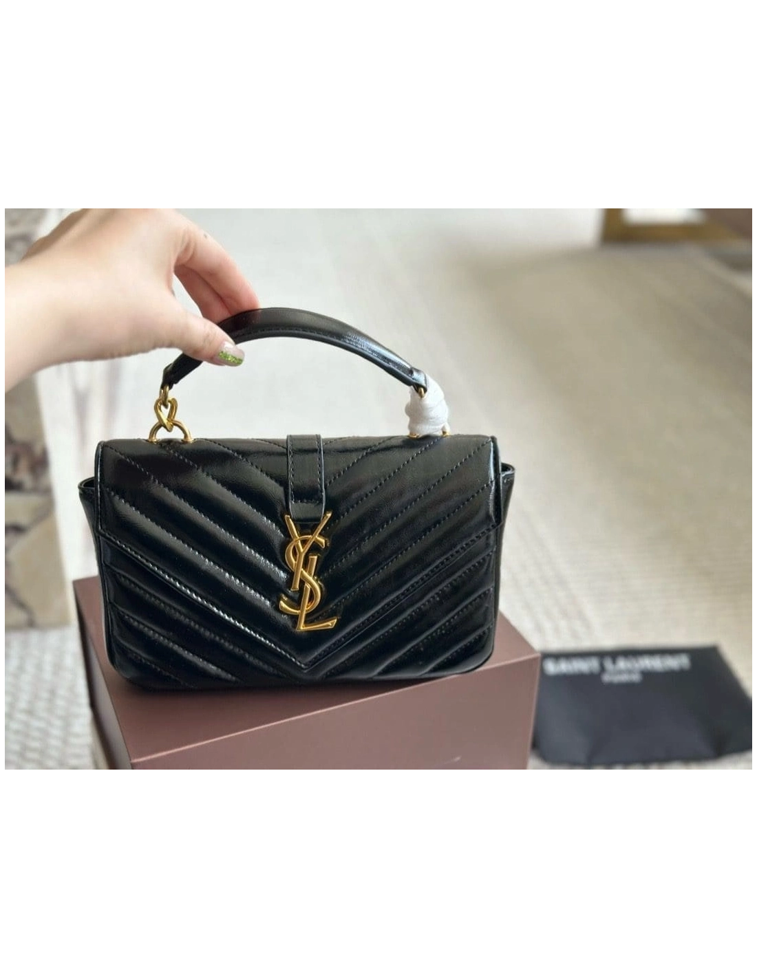 SAINT LAURENT BLACK COLLEGE MINI SHOULDER BAG