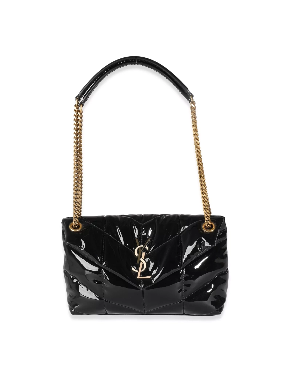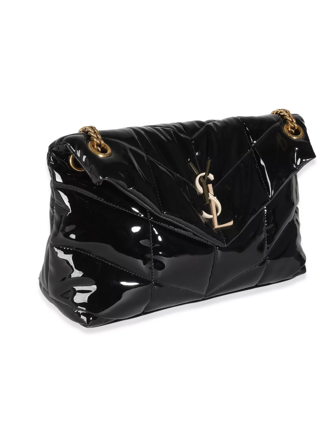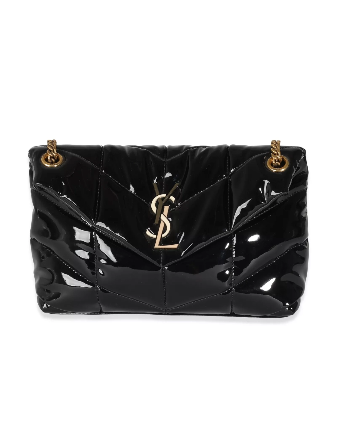 Saint Laurent Black Quilted Patent Small Lou Puffer Chain Bag
