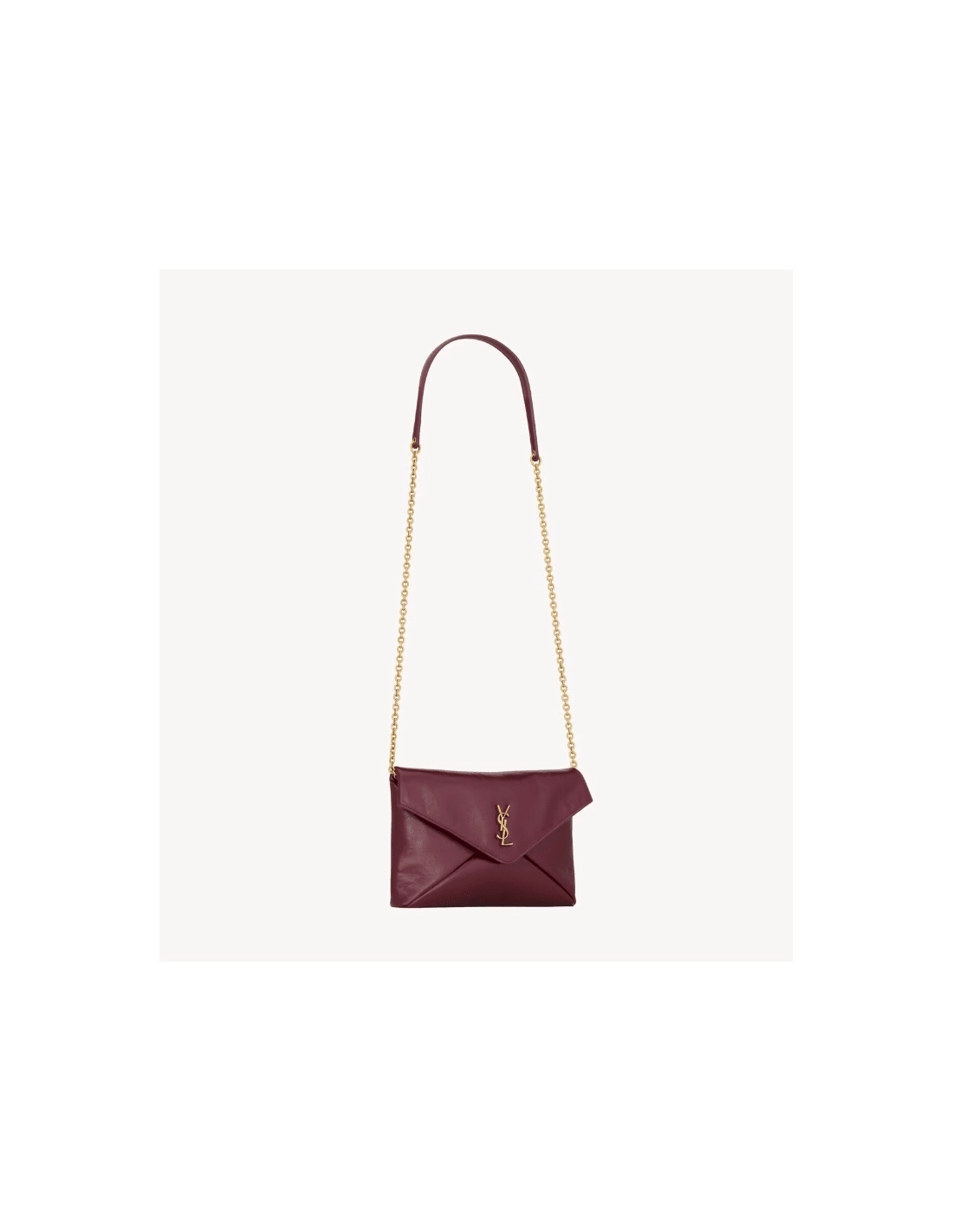 Saint Laurent CASSANDRE Chain Pouch In Shiny Leather DARK RUBY