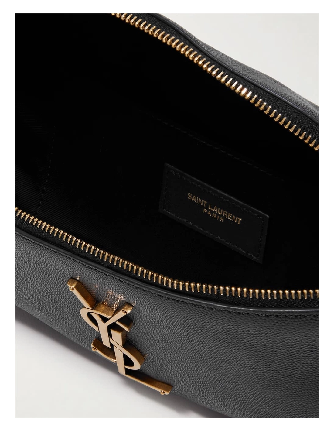 SAINT LAURENTs Cassandre bag remains one of the labels most popular styles. This belt version has been crafted in France from textured leather and detailed with a gold-tone logo plaque at the front. Stow your wallet, phone and lipgloss inside, and use the buckle to find a comfortable fit.