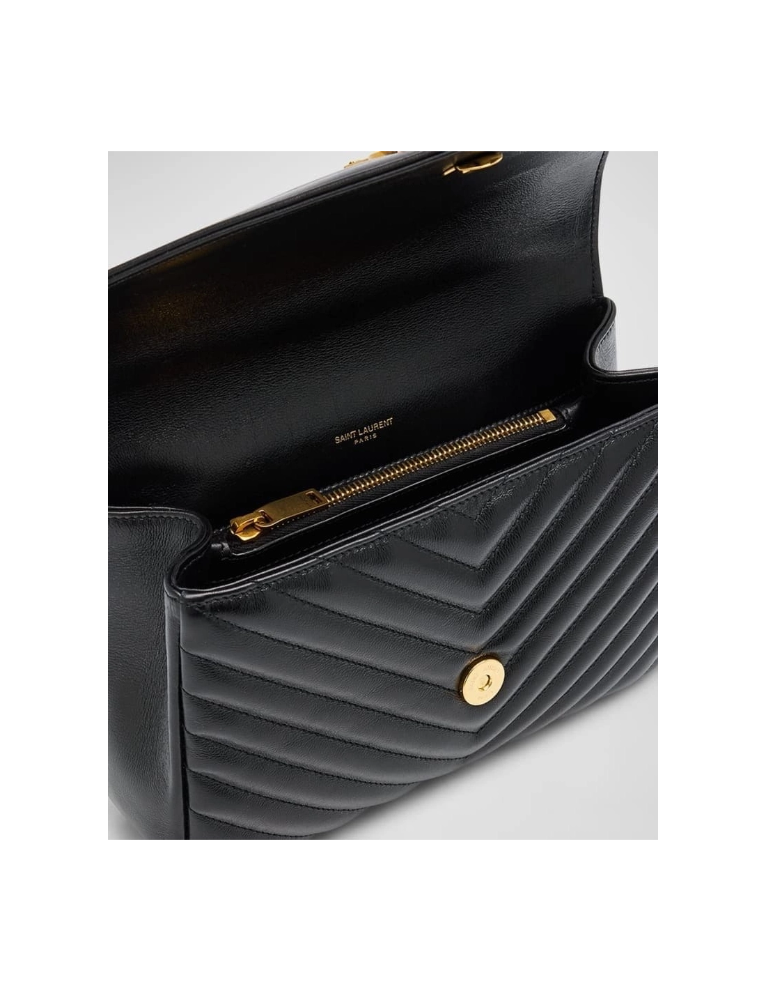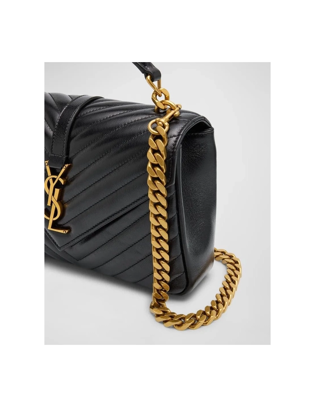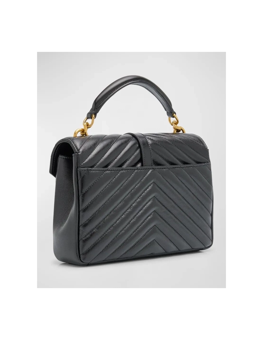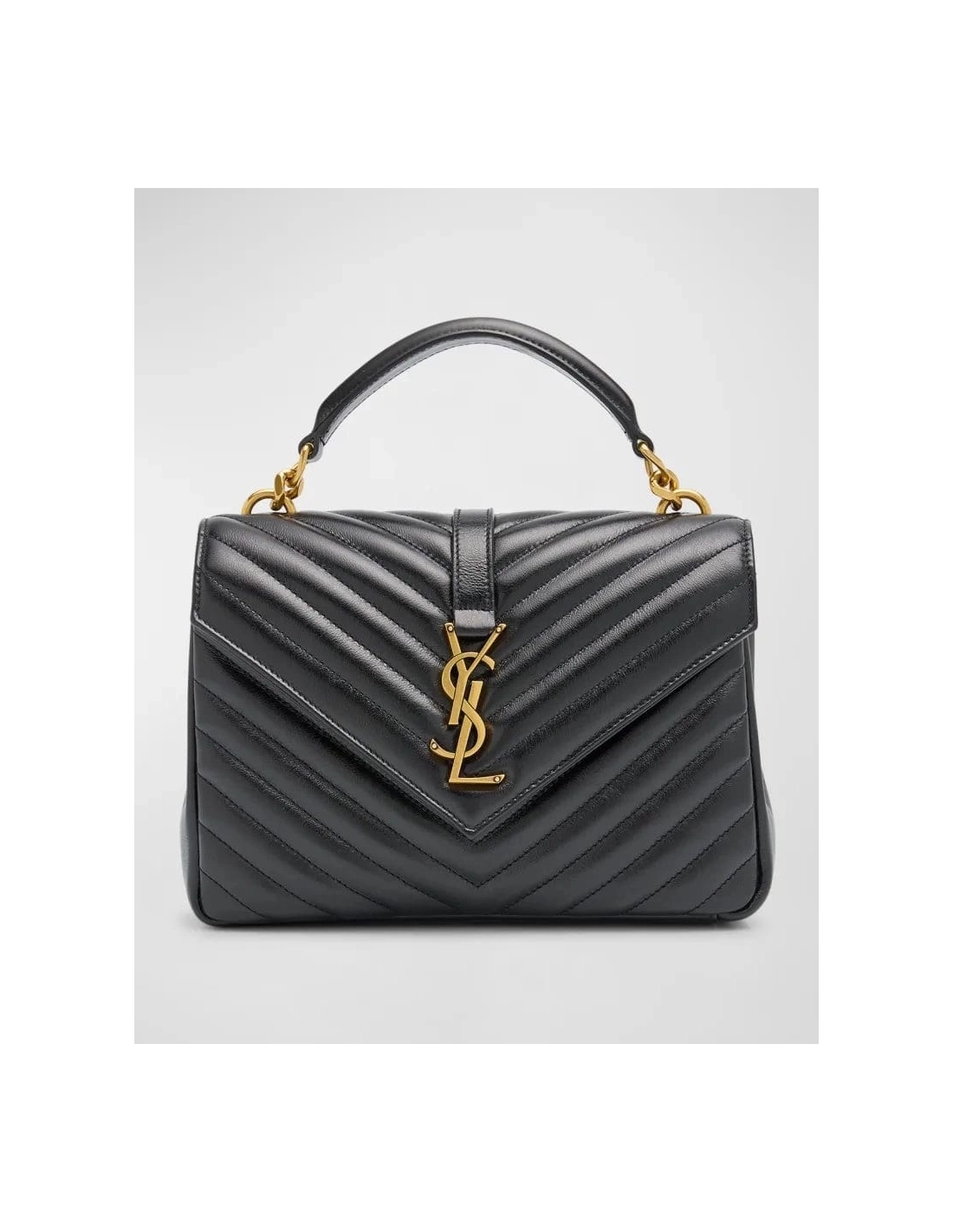 Saint Laurent College Medium YSL Flap Top Handle Bag In Quilted Leather