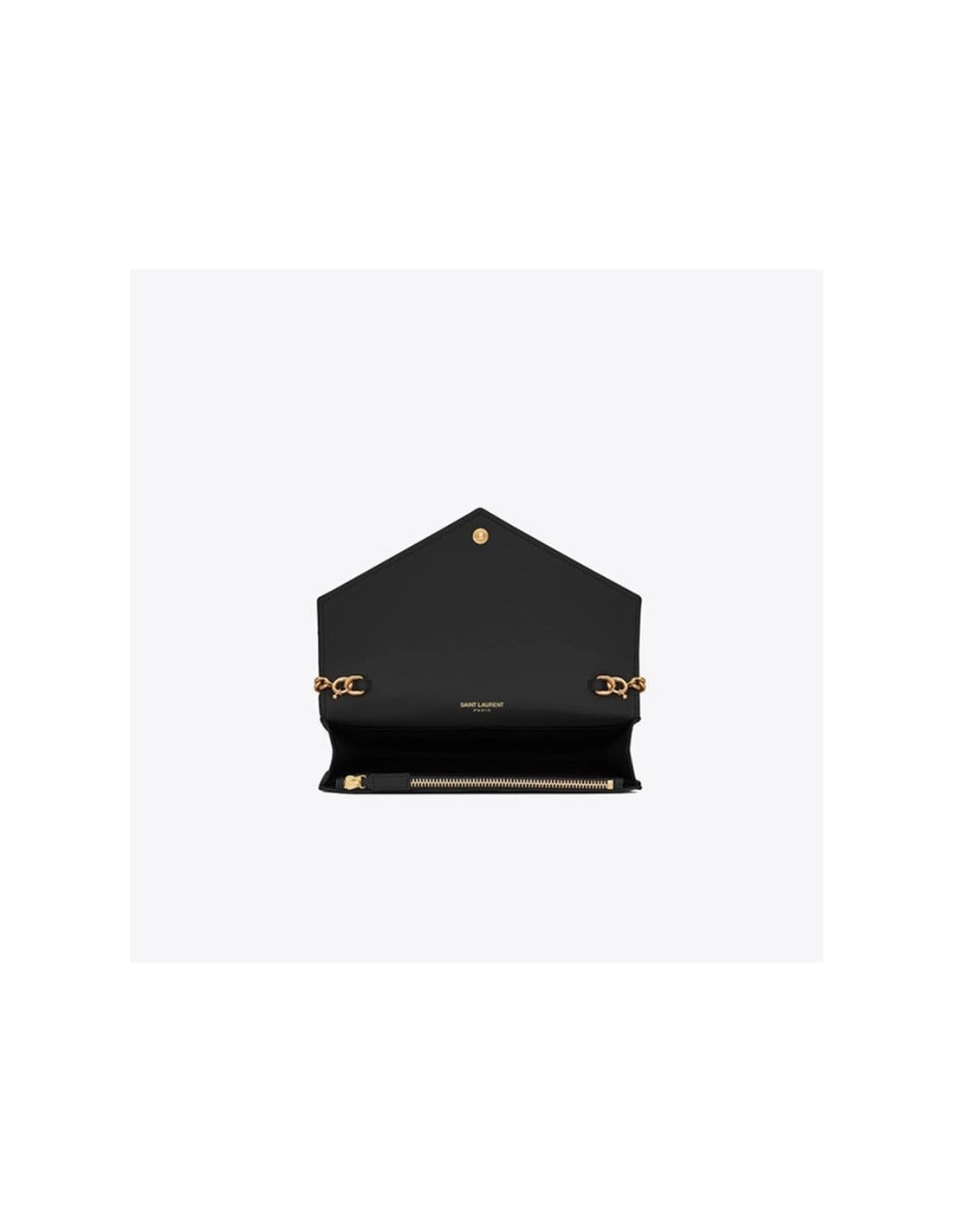 CLASSIC MONOGRAM Saint Laurent FLAP FRONT WALLET WITH REMOVABLE LEATHER AND METAL CHAIN, INTERLOCKING YSL SIGNATURE AND MATELASSe STITCHING.