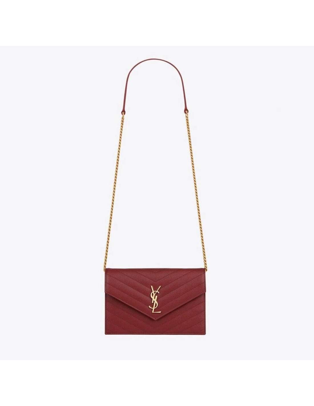 Saint Laurent Envelope Chain Wallet In Grain De Poudre Embossed