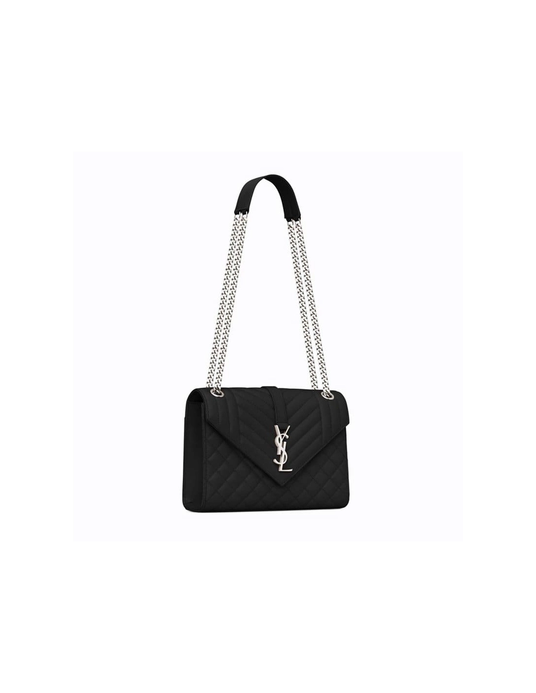 Saint Laurent Envelope Medium Bag In Mix Matelasse Grain De Poud BLACK