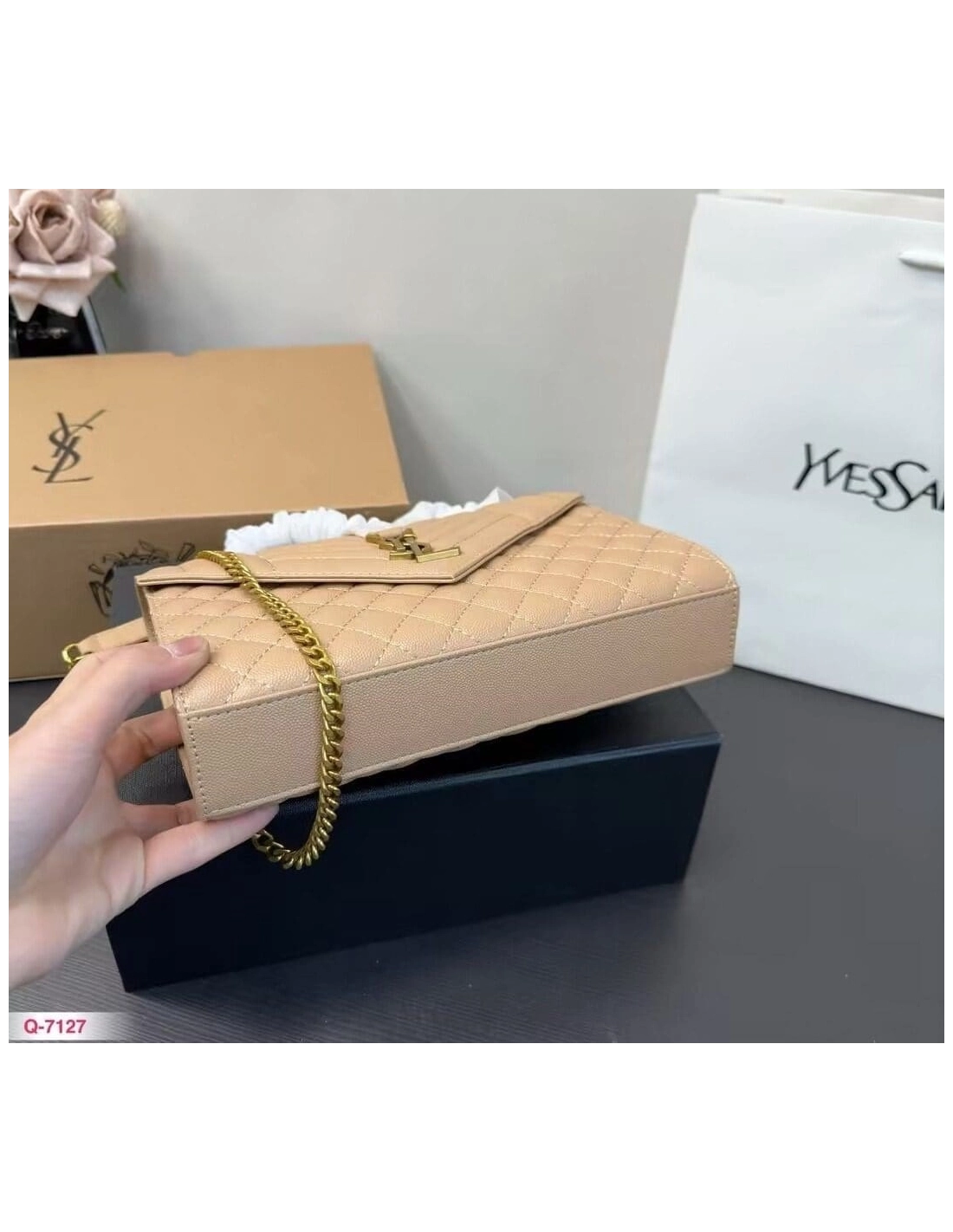 Saint Laurent ENVELOPE MEDIUM IN QUILTED GRAIN DE POUDRE EMBOSSED LEATHER