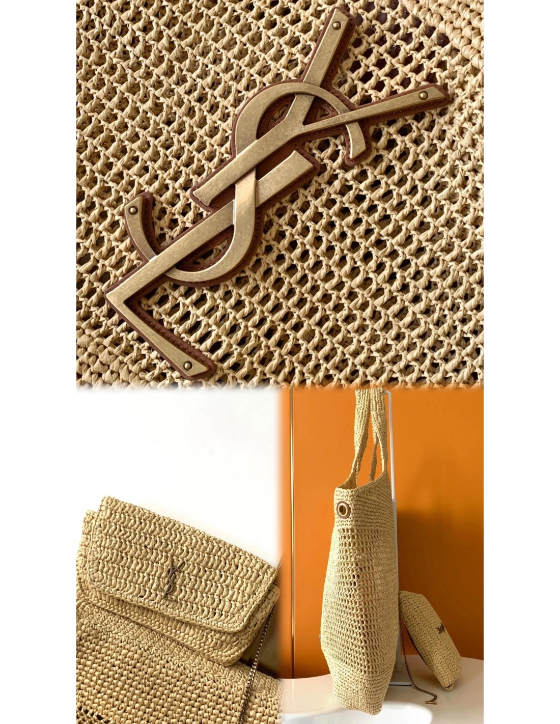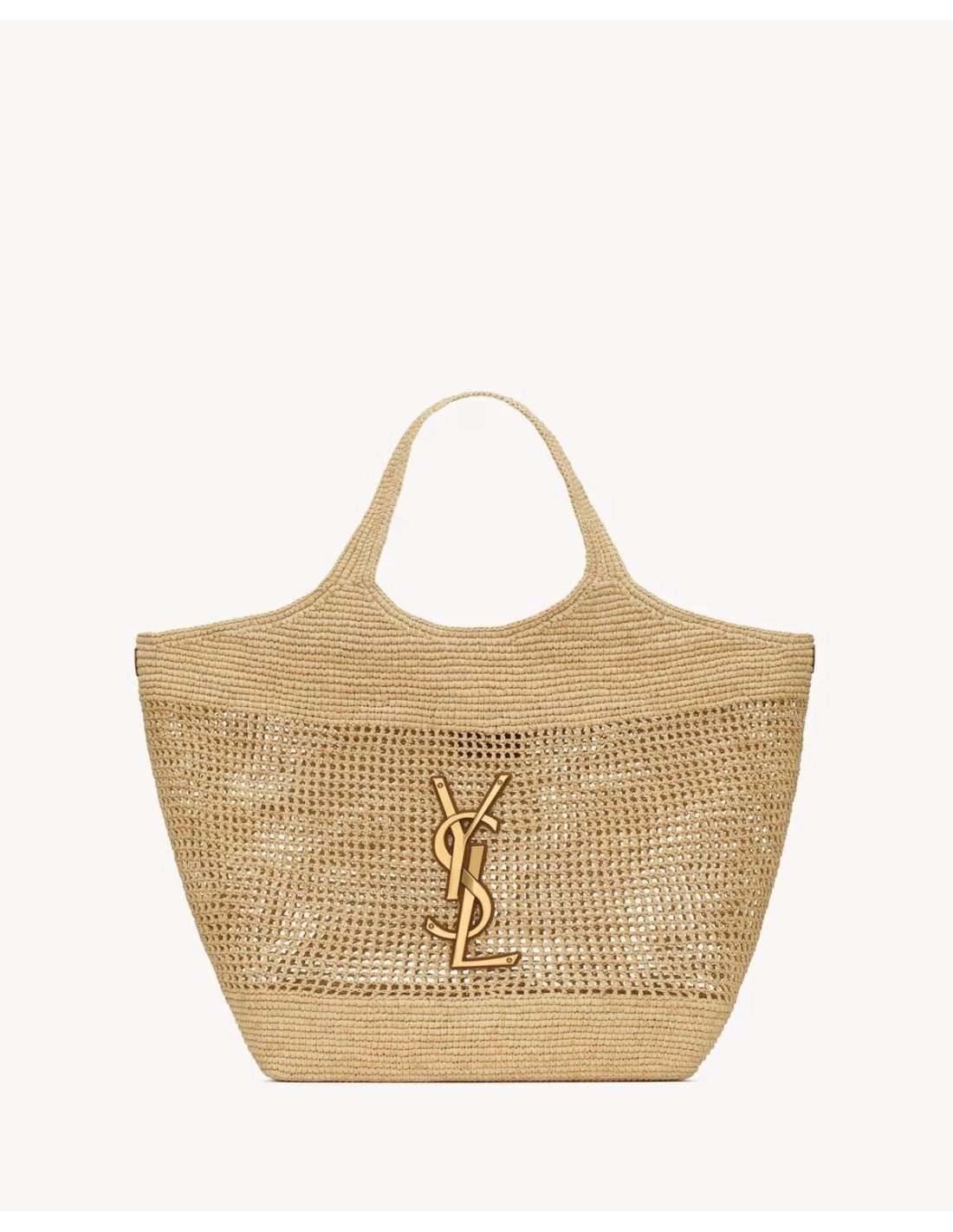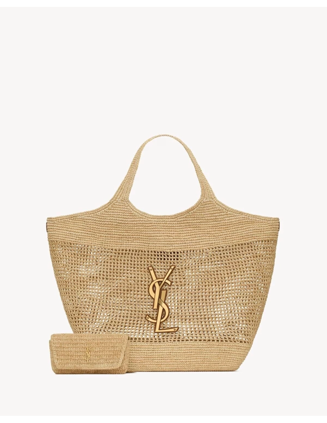 SAINT LAURENT ICARE IN RAFFIA NATUREL AND BROWN GOLD