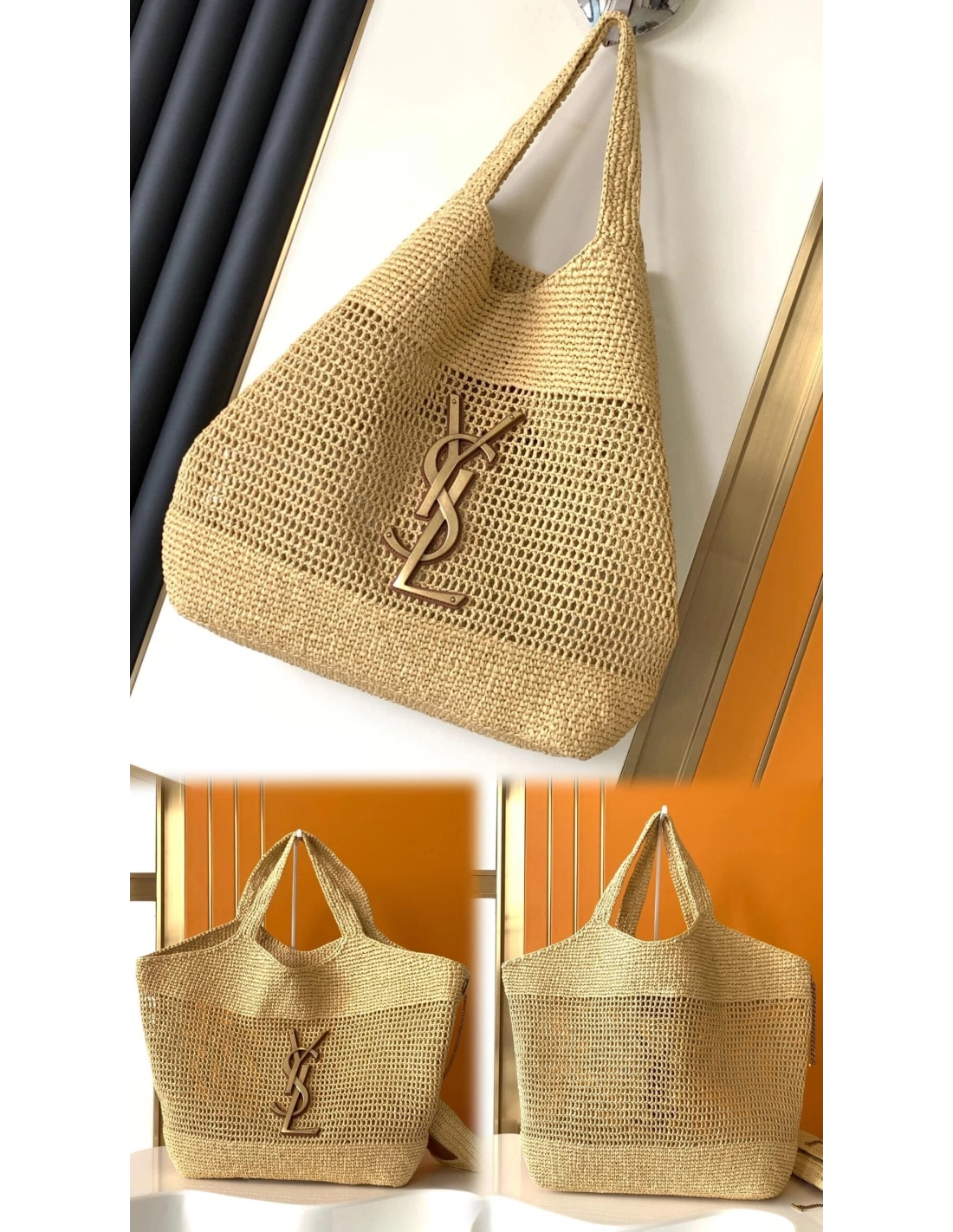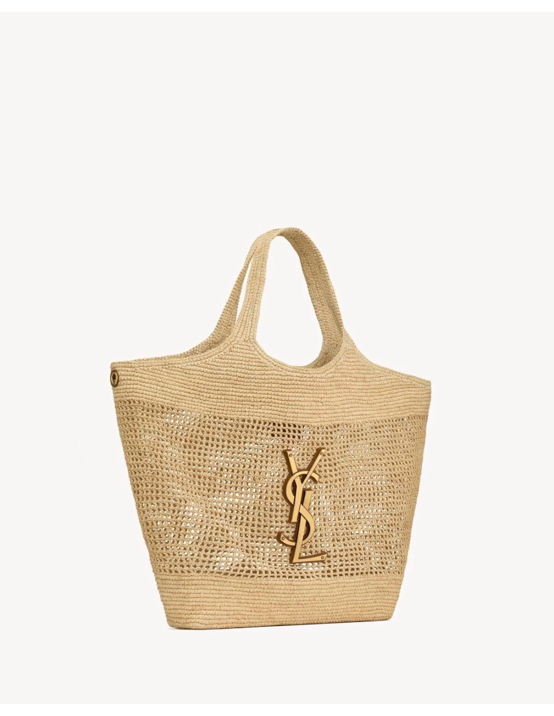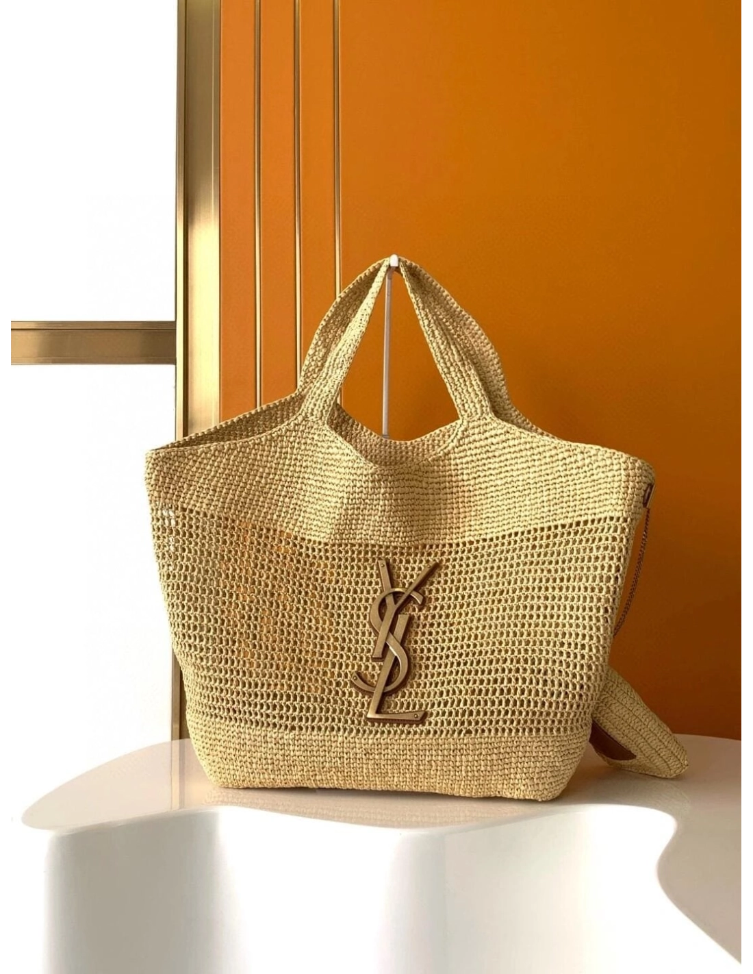 SAINT LAURENT ICARE IN RAFFIA NATUREL AND BROWN GOLD