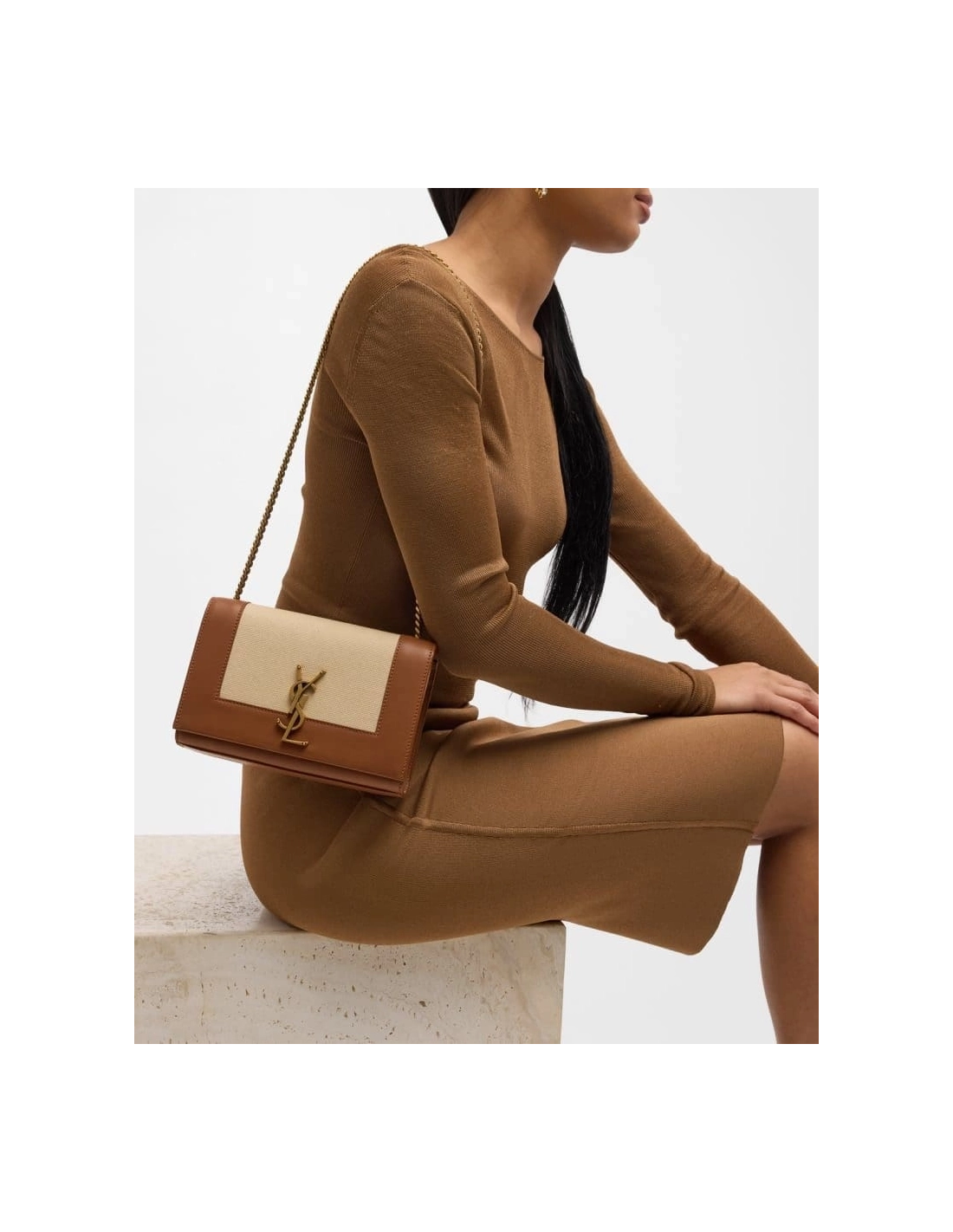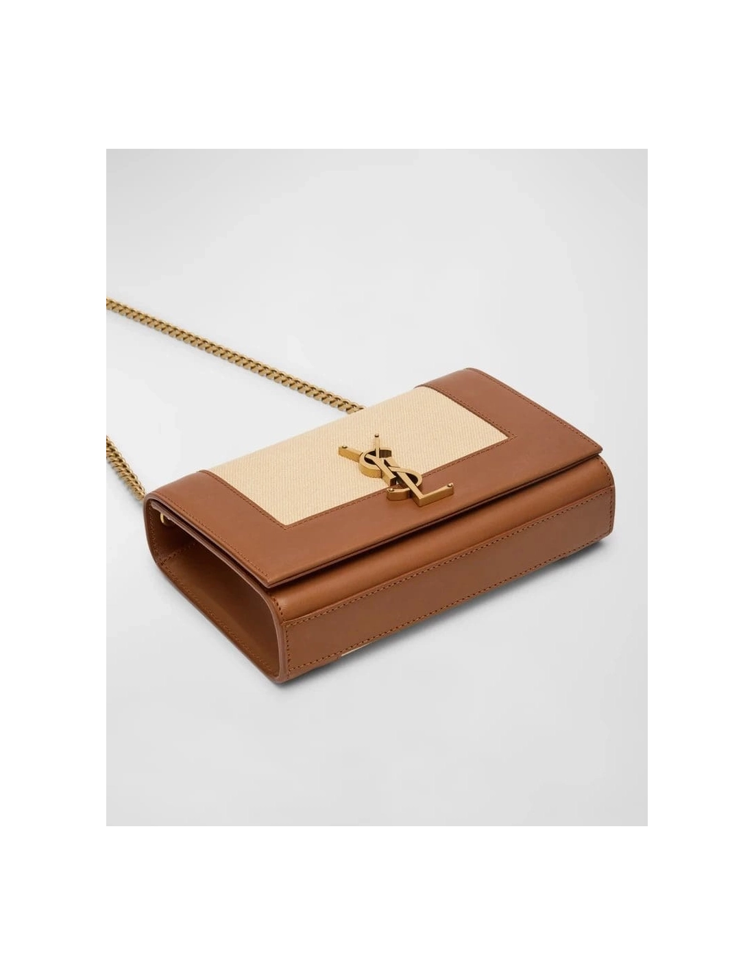 Saint Laurent Kate Small YSL Wallet On Chain In Linen And Leather
