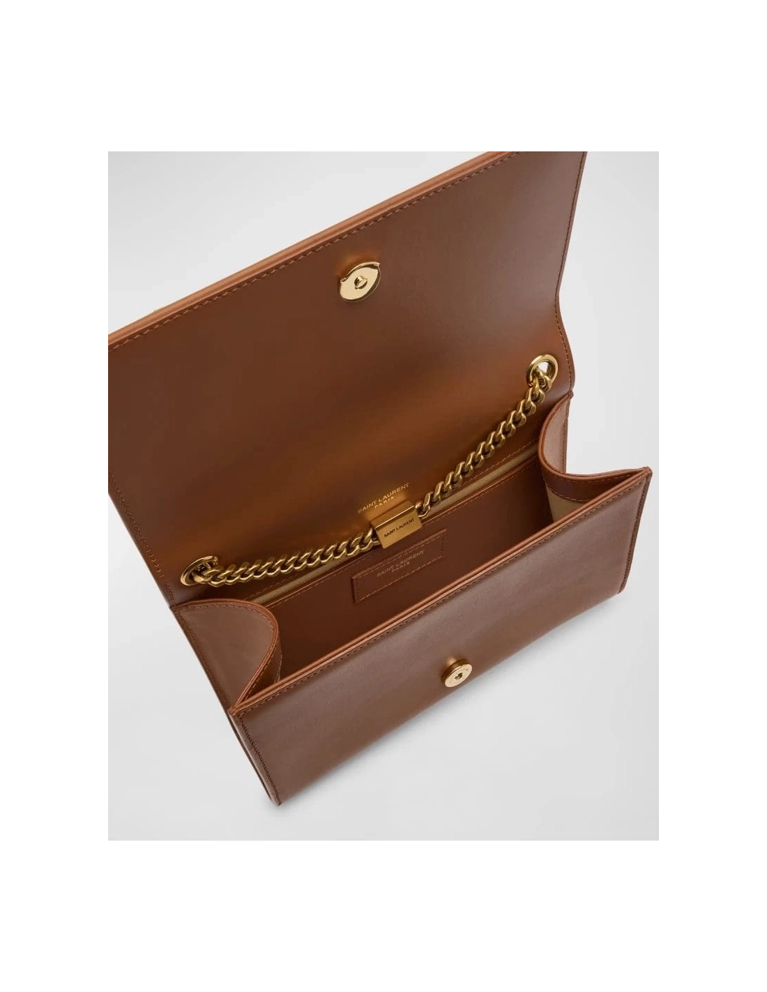 Features signature YSL logo lettering