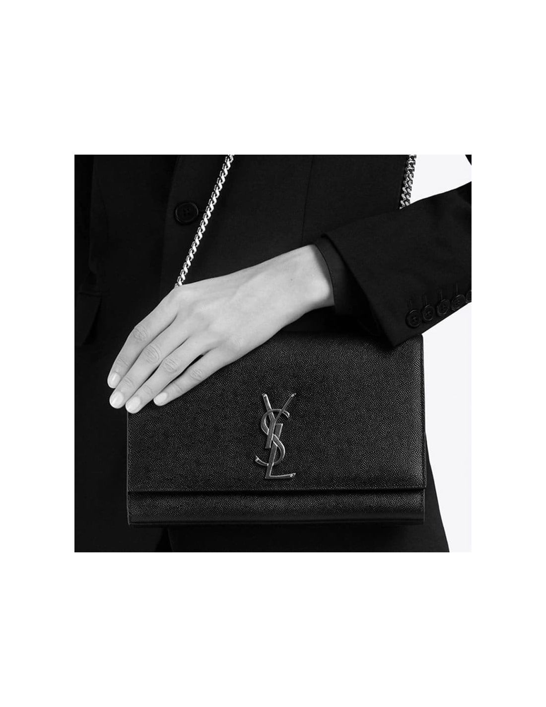 CLASSIC MONOGRAM Saint Laurent GOURMETTE CHAIN SHOULDER BAG WITH INTERLOCKING METAL YSL SIGNATURE.