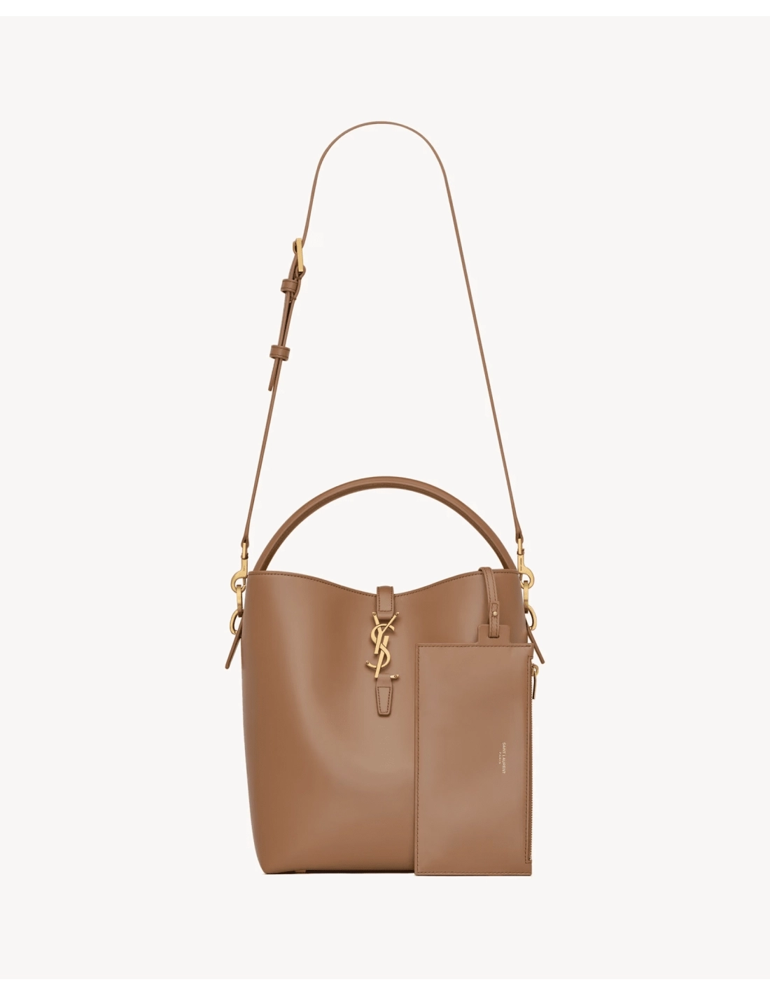 BUCKET BAG FEATURING THE CASSANDRE HOOK CLOSURE, TOP HANDLE AND AN ADJUSTABLE AND DETACHABLE SHOULDER STRAP. The piece is complete with a removable zip pouch.