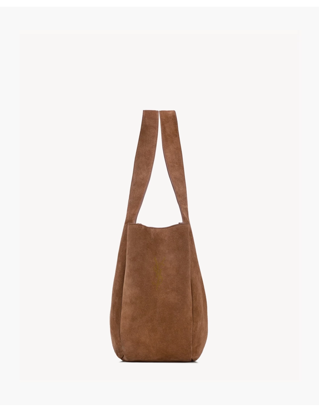 Supple suede tote bag. This lightweight bag is fully lined with tonal suede and features an interior zip pocket and a leather flap closure embellished with the CASSANDRE logo.