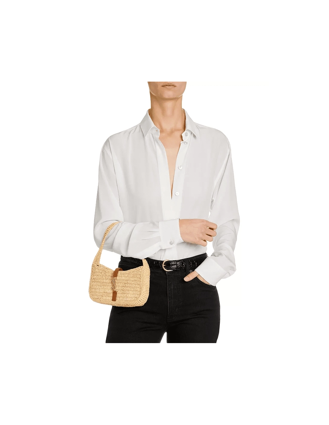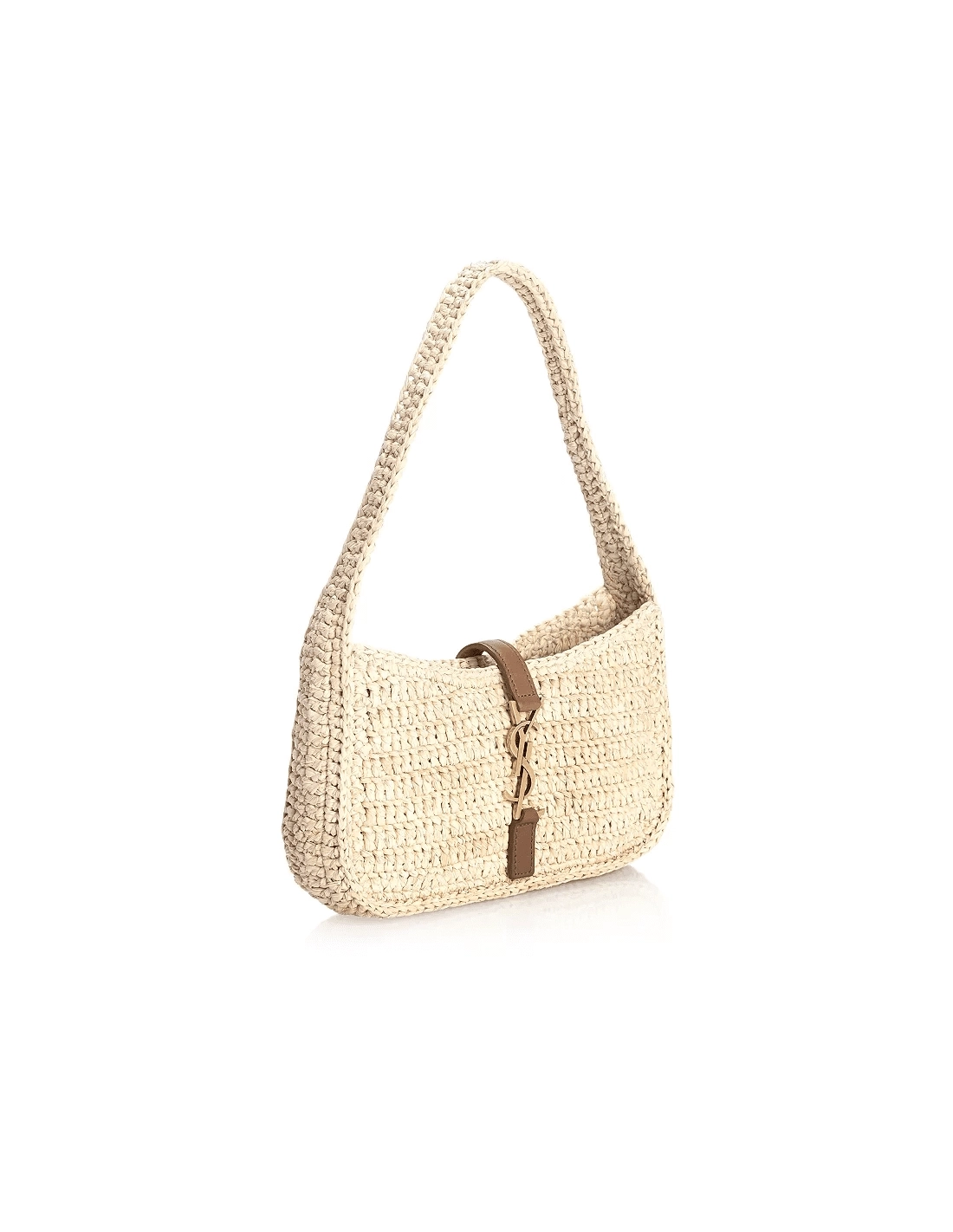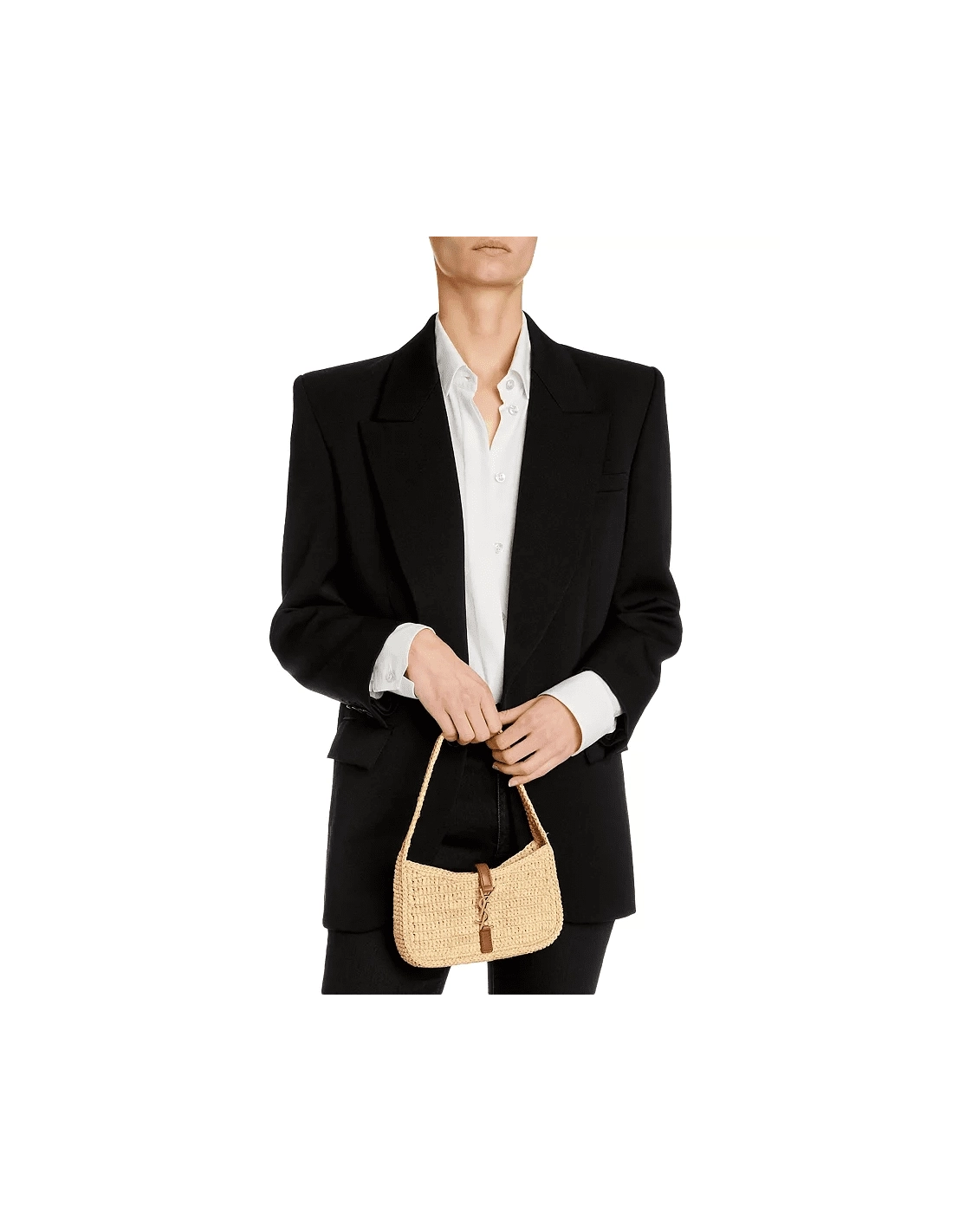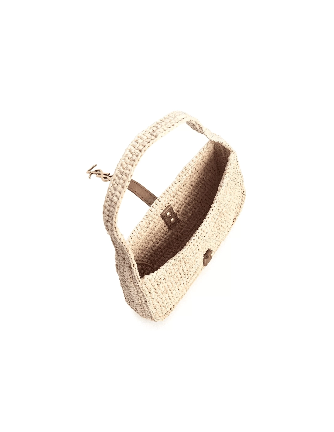 Top handle, 5.9 drop Dimensions: 7.5W x 1.8D x 4.5H/19.05 cm (W) X 4.57 cm (D) X 11.43 cm (H) Monogram logo hook closure Bronze-tone hardware Leather trim Raffia Website products are divided into three levels, mid-range, high-end, and top quality This price is top notch