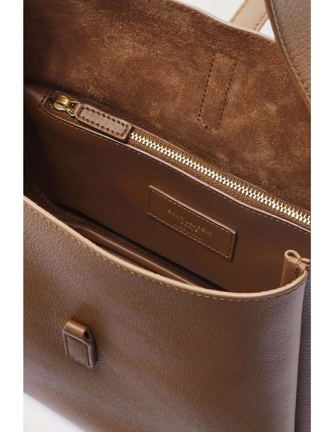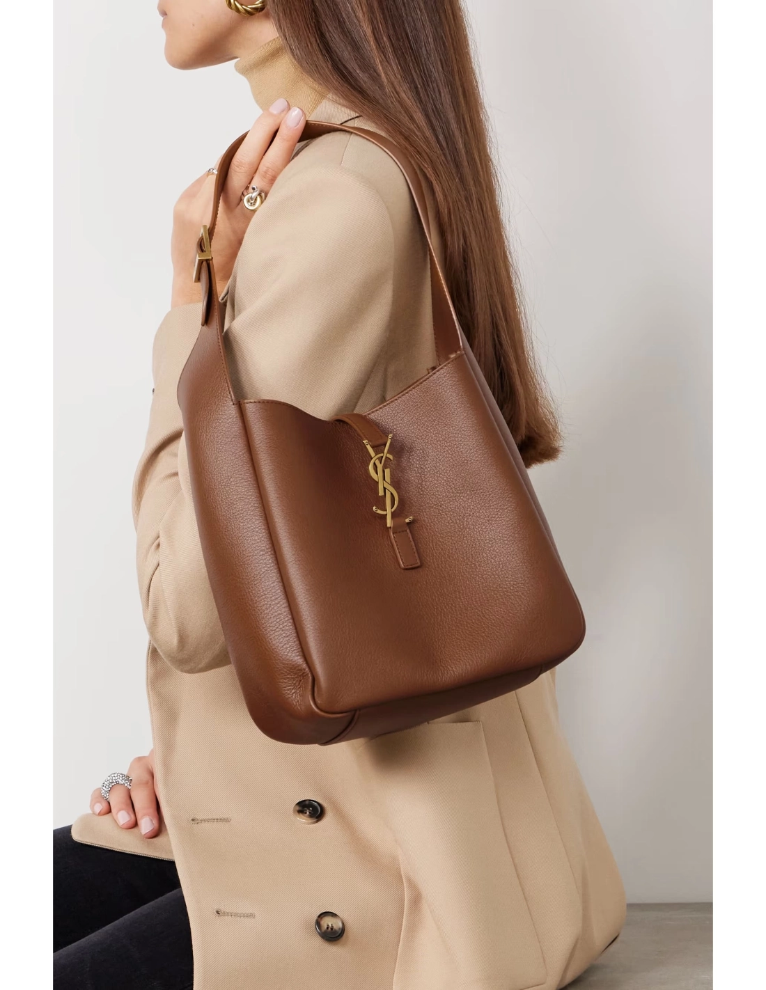 SAINT LAURENT gives its beloved Le 5 A 7 silhouette a spacious update with this brown version. Made from leather, it has an elongated shape with plenty of room for essentials like your phone, cardholder and sunglasses. Match your jewelry to the gleaming gold-tone logo plaque.