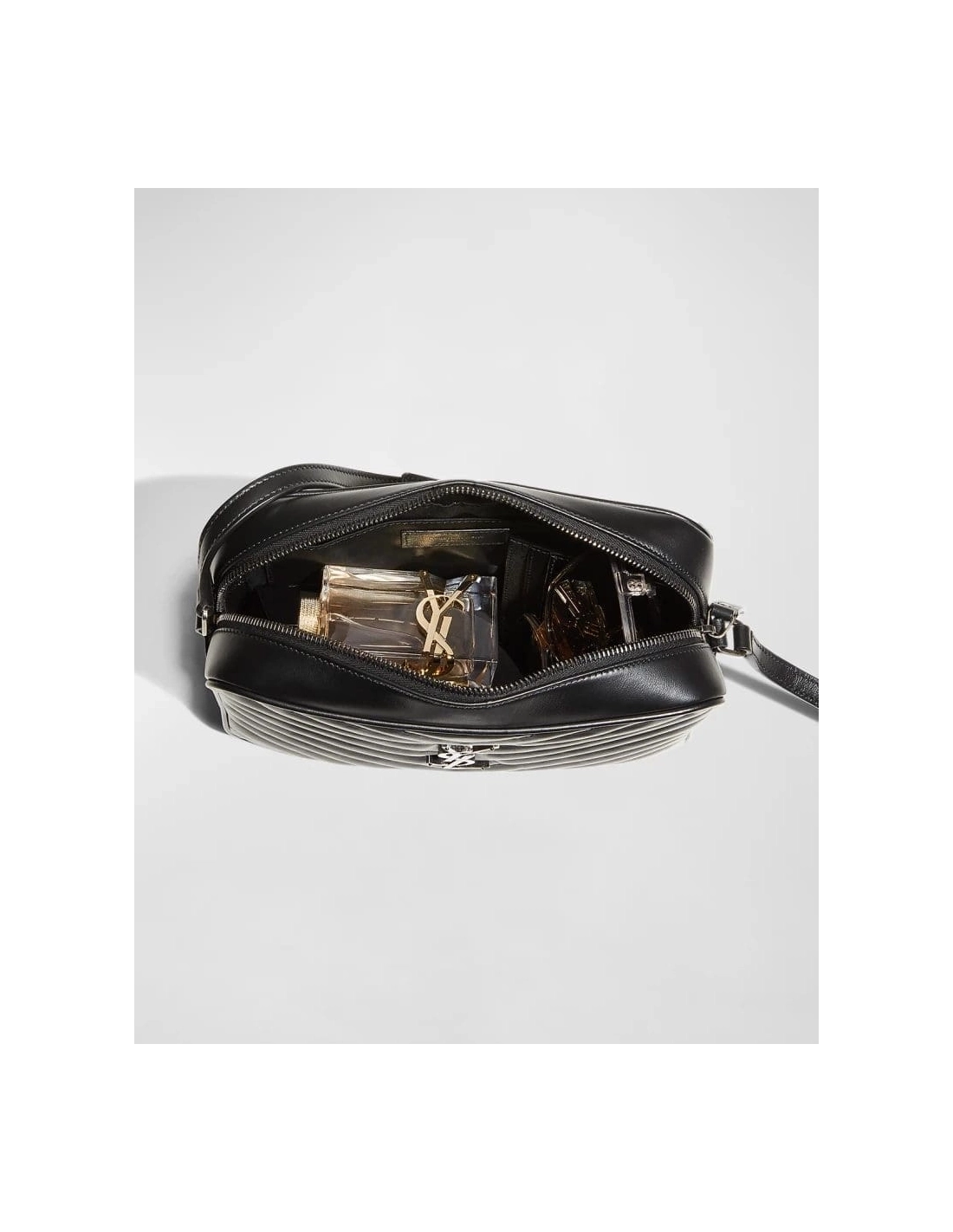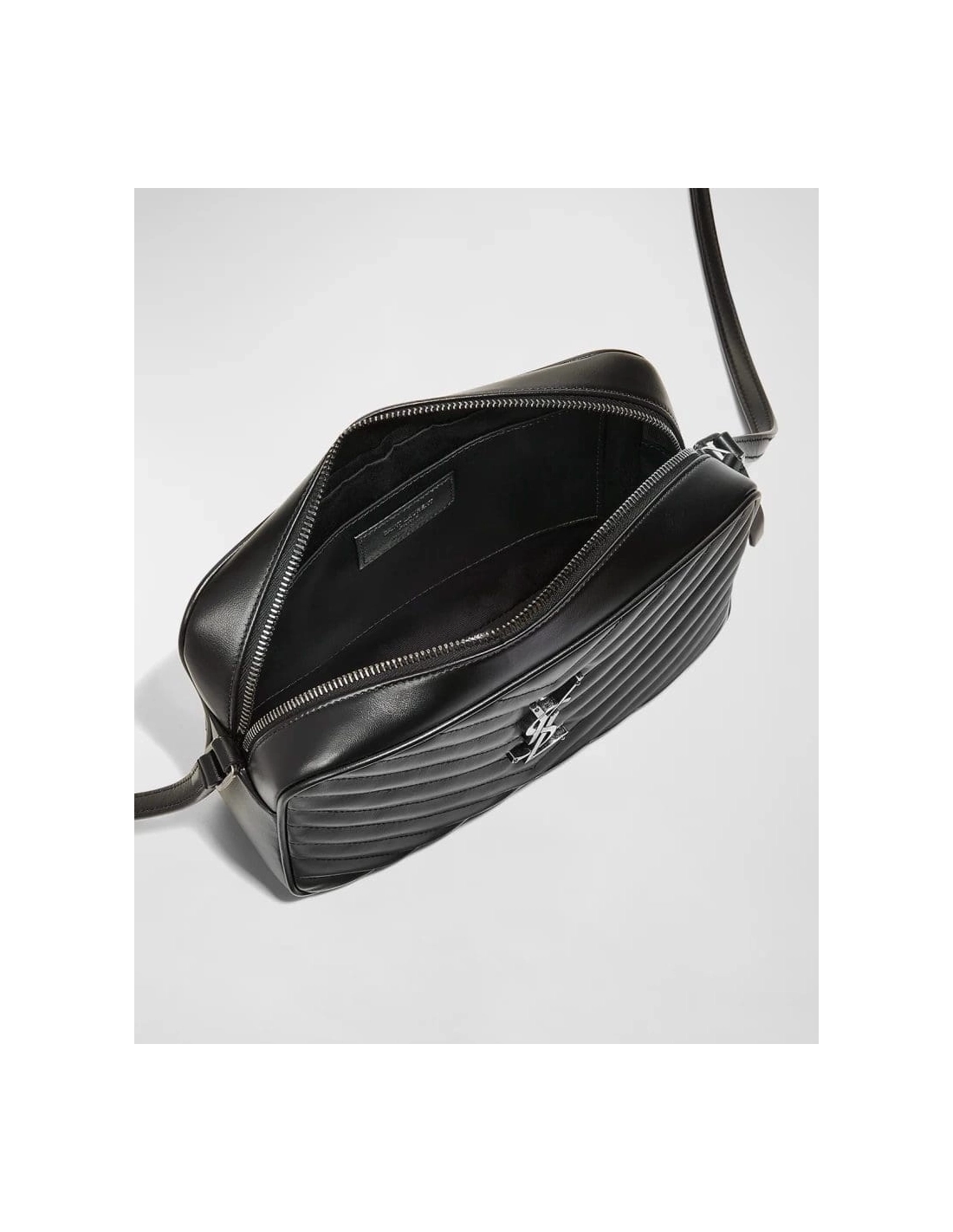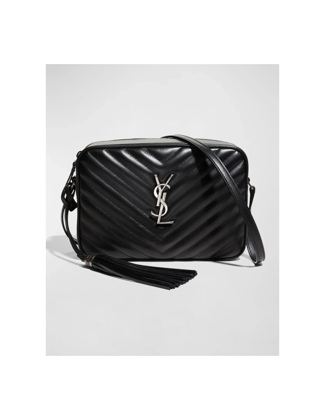 Saint Laurent Lou Medium YSL Monogram Calfskin Camera Crossbody Bag Aged Silver Hardware