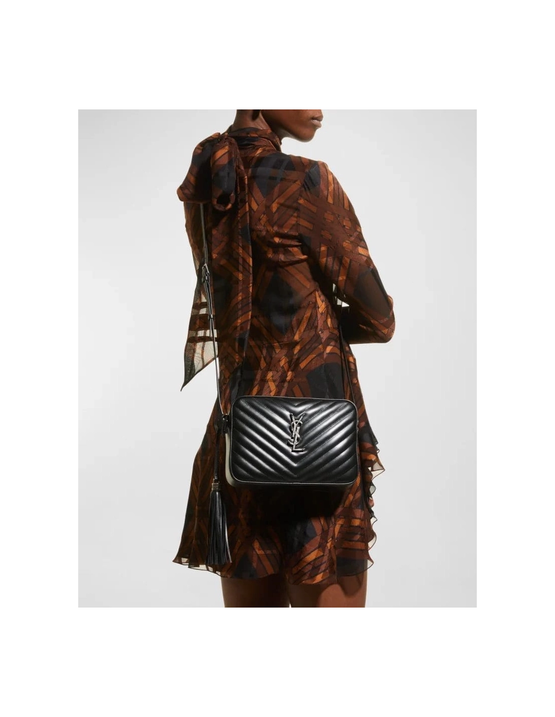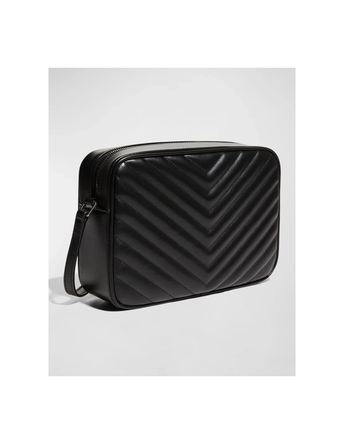 Saint Laurent crossbody bag in chevron-quilted, overstitching leather.