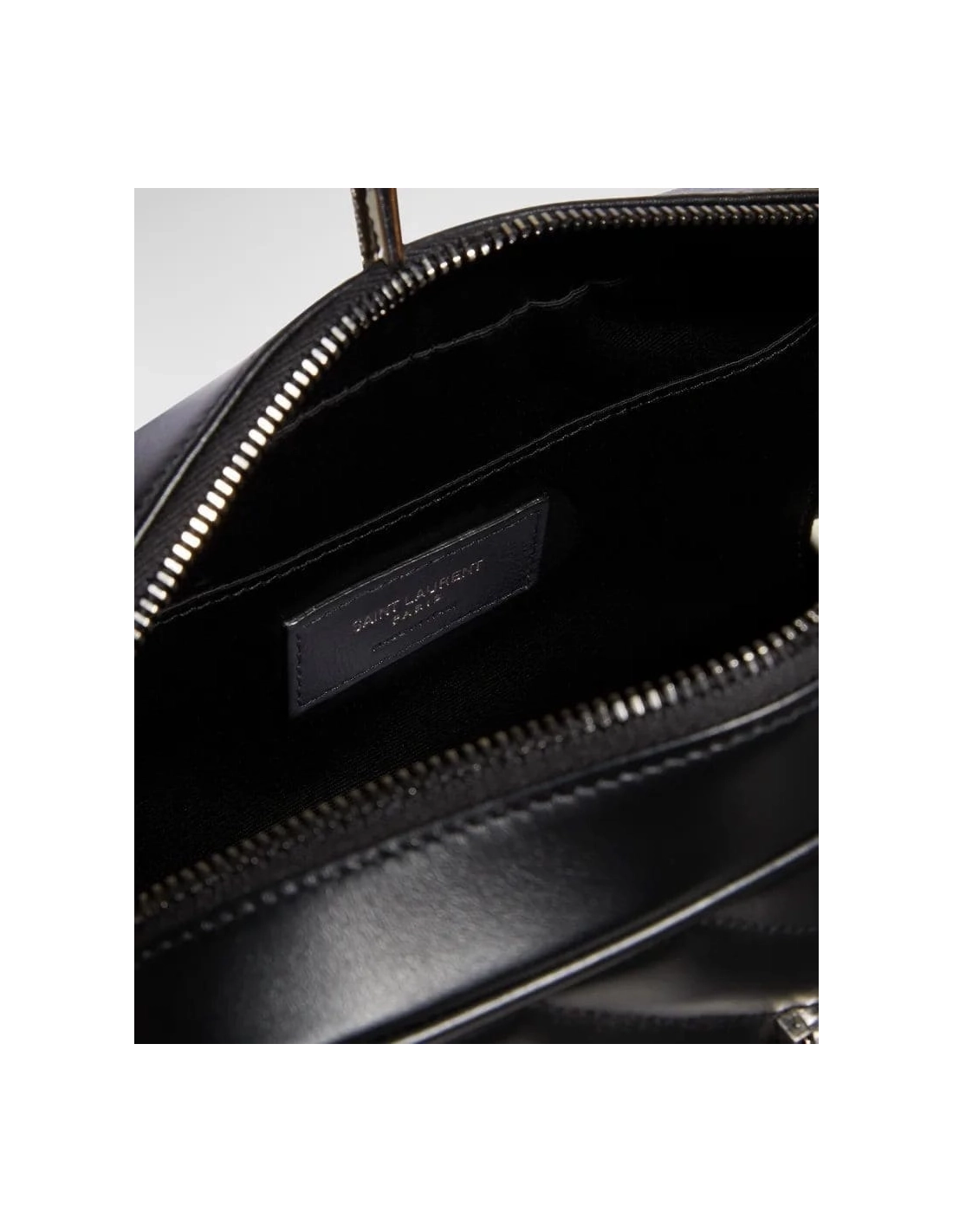 Exterior, signature metal YSL hardware.