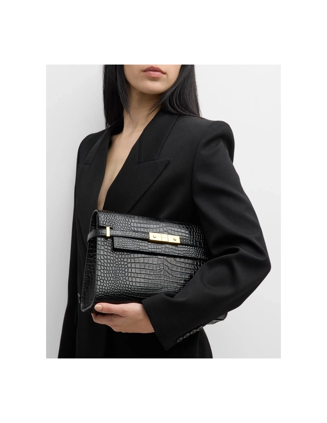 Saint Laurent Manhattan Medium Shoulder Bag In Croc Embossed Leather