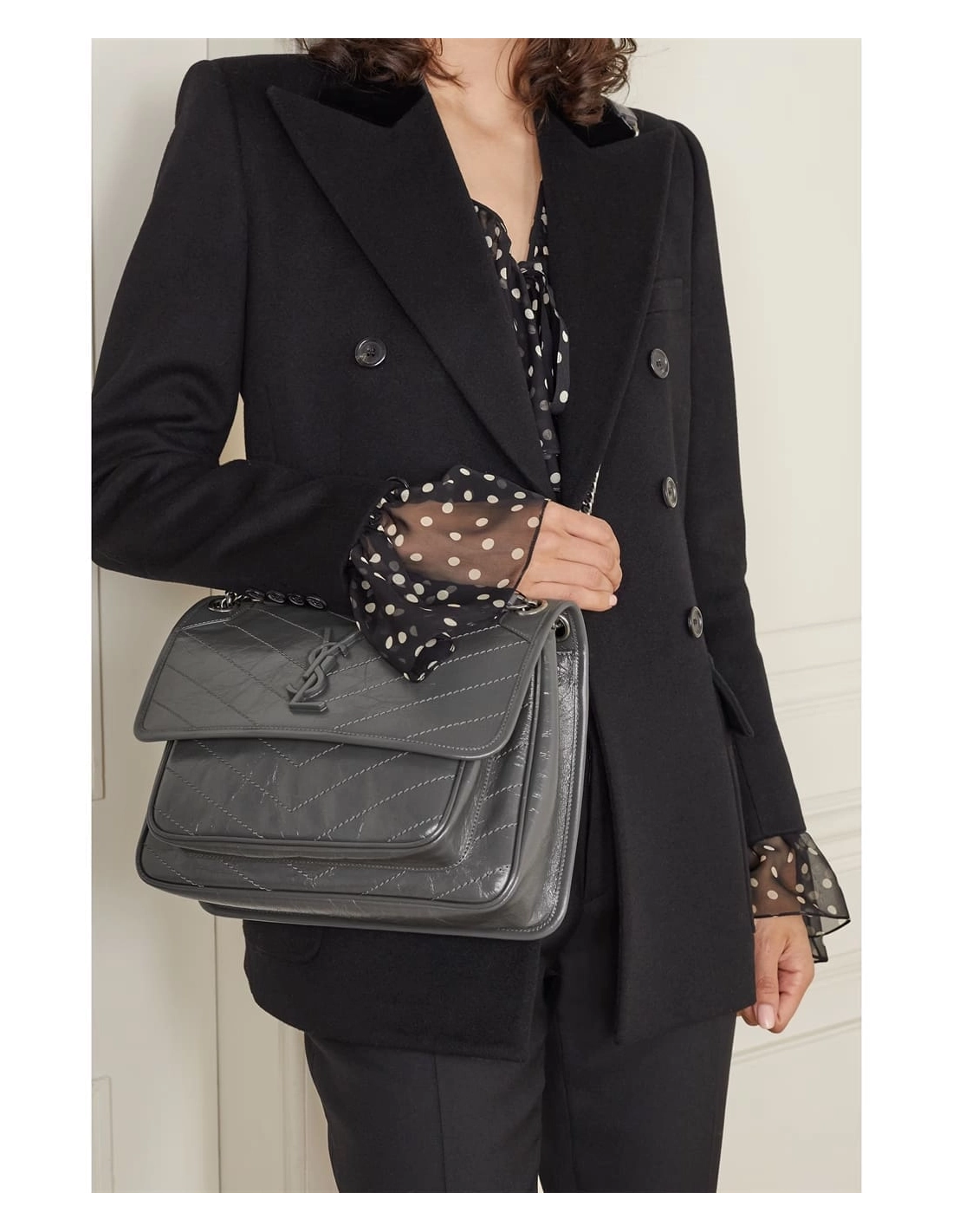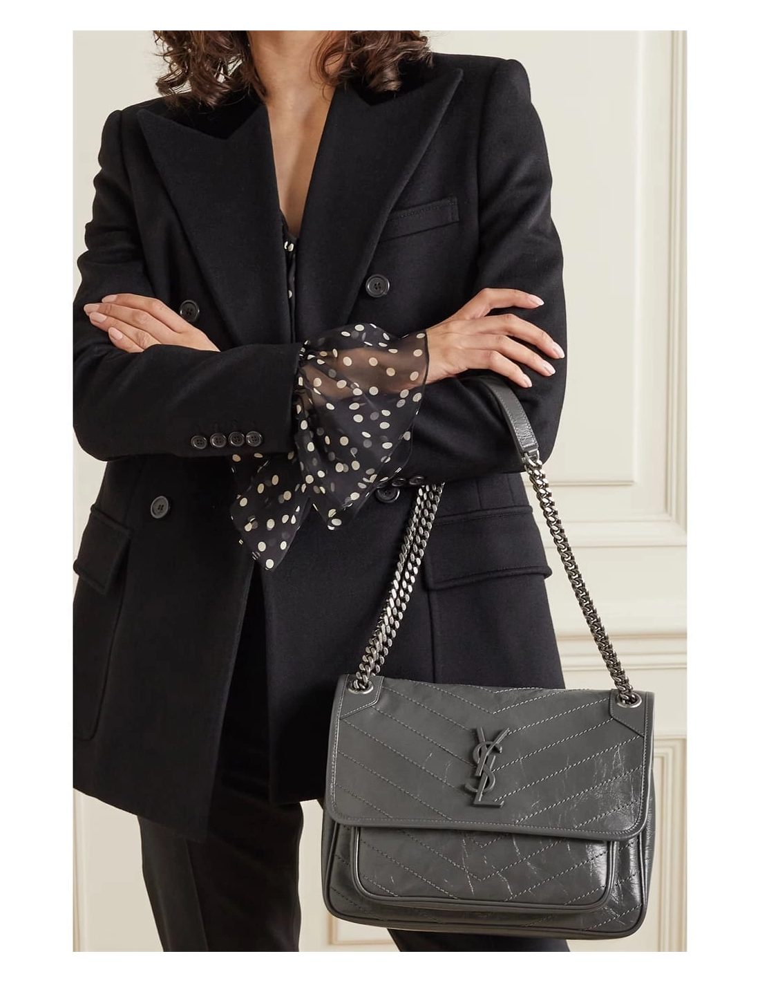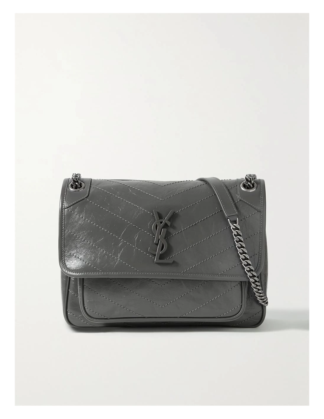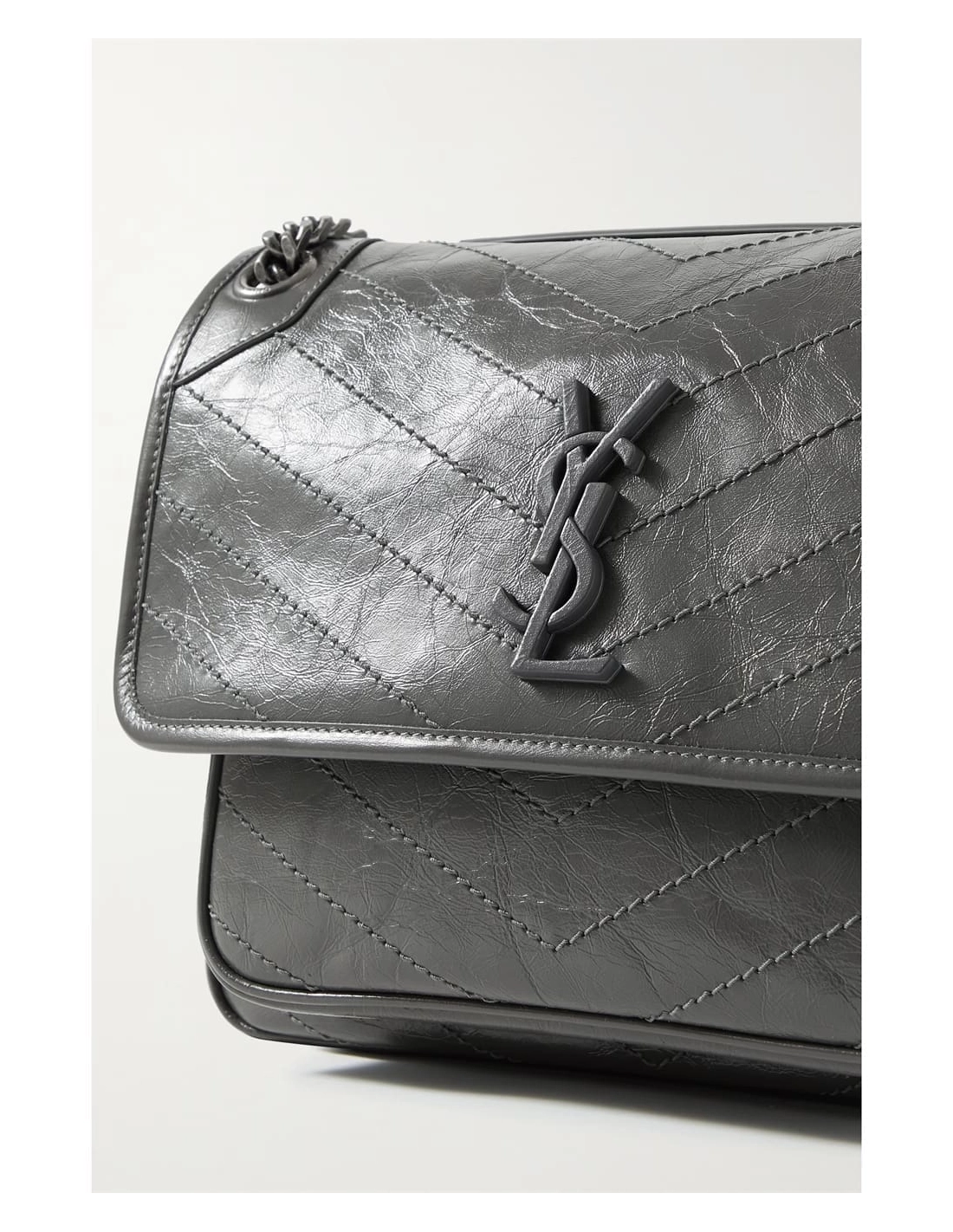 SAINT LAURENT Niki Baby Medium Quilted Crinkled Leather Shoulder Bag