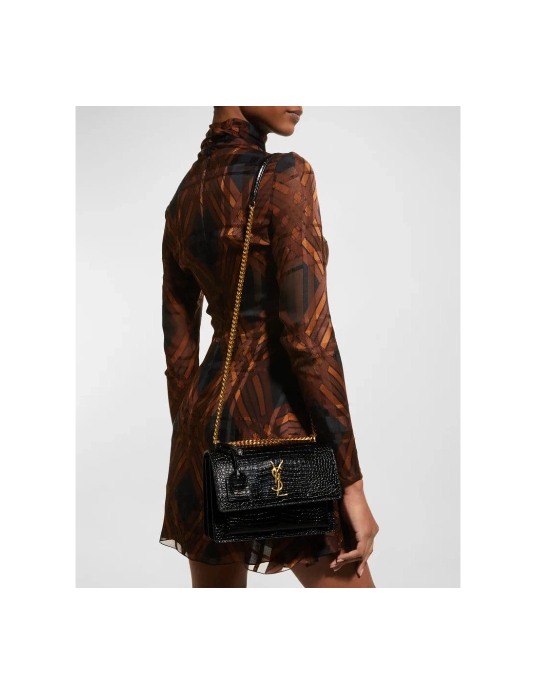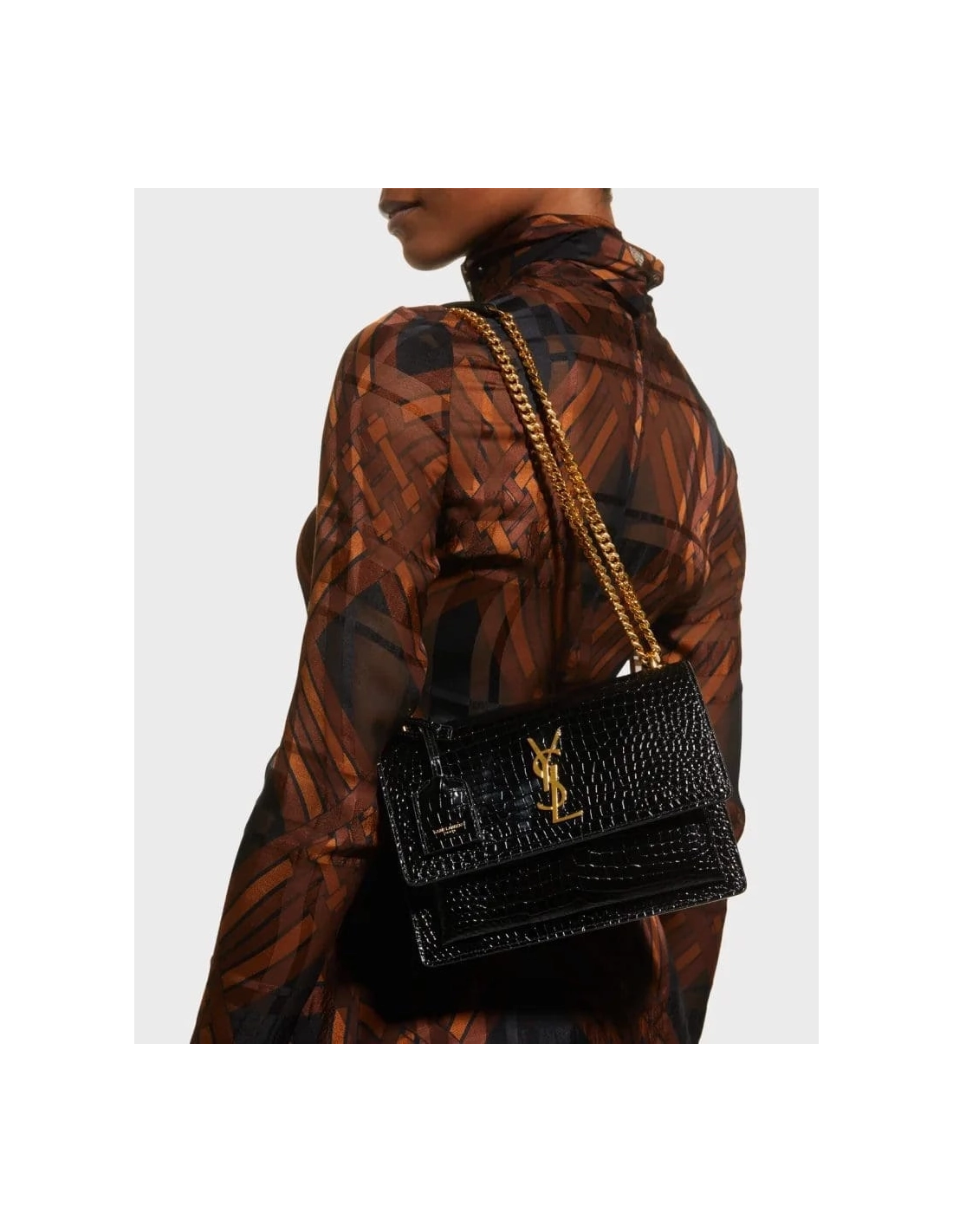 Saint LaurentSunset shoulder bag in shiny croc-embossed calf leather